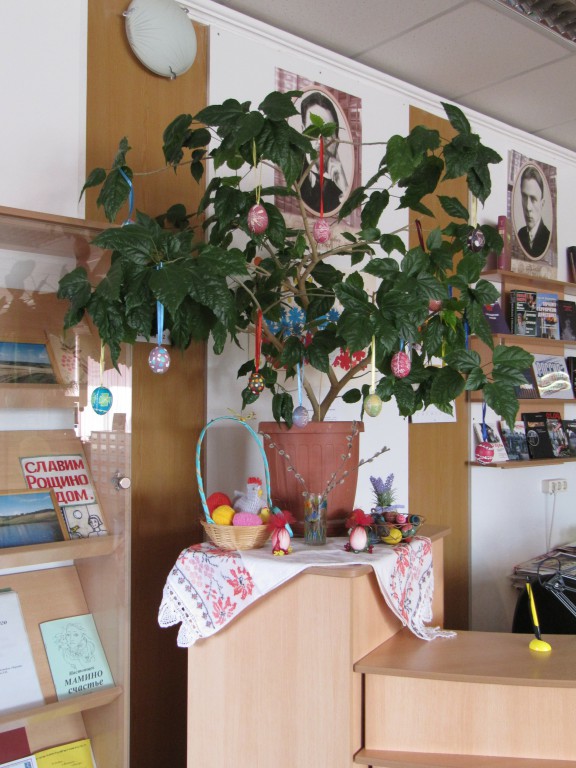 Накануне светлого праздника «Пасха» в библиотеке распустилось пасхальное дерево. Украшают его писанки, крапанки, крашенки мастерски созданные руками ребят фольклорного отделения ДШИ под руководством К.Е Скворцовой и Л.П. Шмаковой.