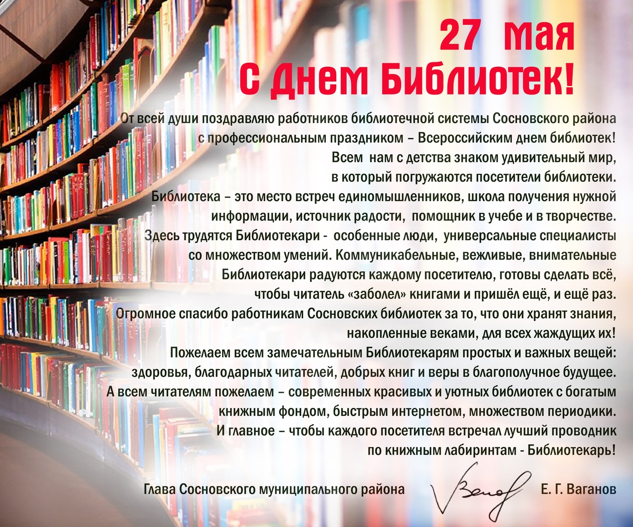 Поздравление Главы Сосновского муниципального района Евгения Ваганова.