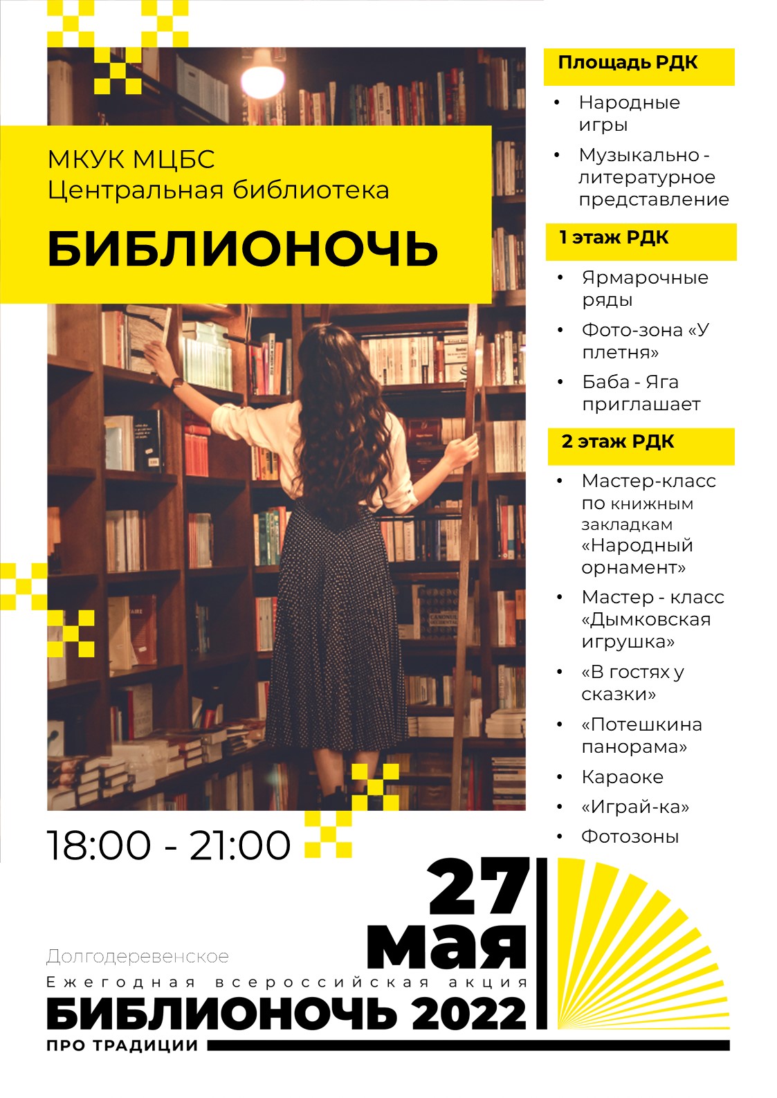 Дорогие друзья! 27 мая с 18:00 до 21:00 Центральная библиотека (с.Долгодеревенское) приглашает всех на Всероссийскую акцию "Библионочь- 2022".