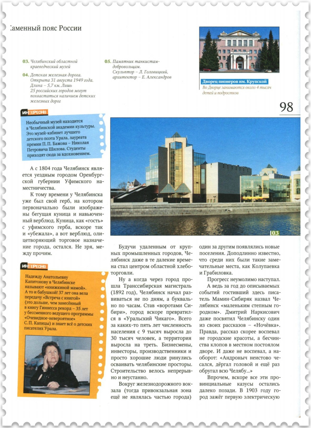 Каменный пояс России. Путешествие по Уралу с детскими писателями. - 2-е изд. - Екатеринбург: Генри Пушель, 2013. - 128 с.: цв. ил.