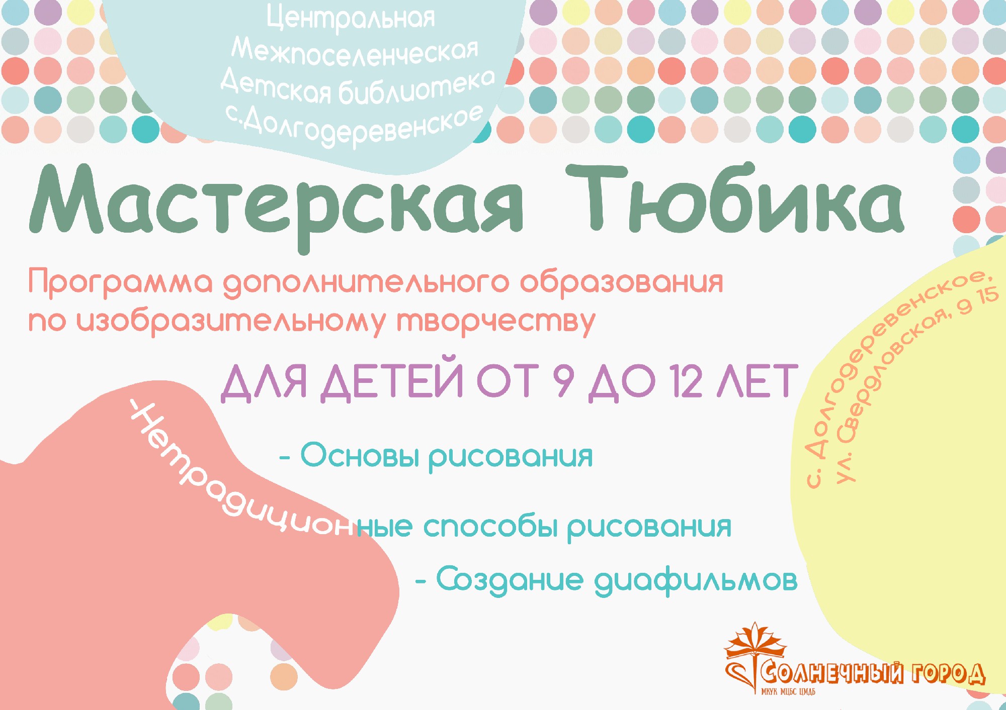 Занятия будут проходить каждый вторник и четверг в 15:00 в Центральной Межпоселенческой Детской библиотеке по адресу с. Долгодеревенское, ул. Свердловская, д.15.