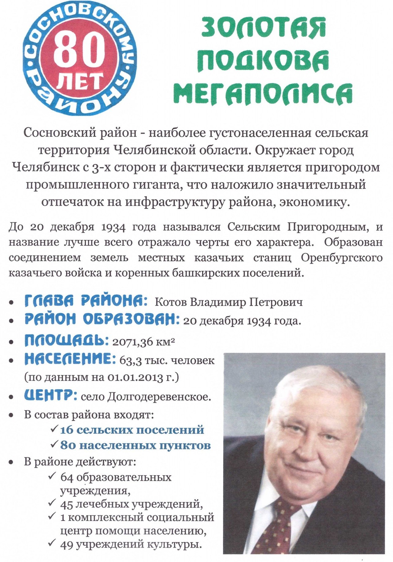 1. 20 декабря 2014 года исполняется 80 лет Сосновскому муниципальному району Челябинской области!