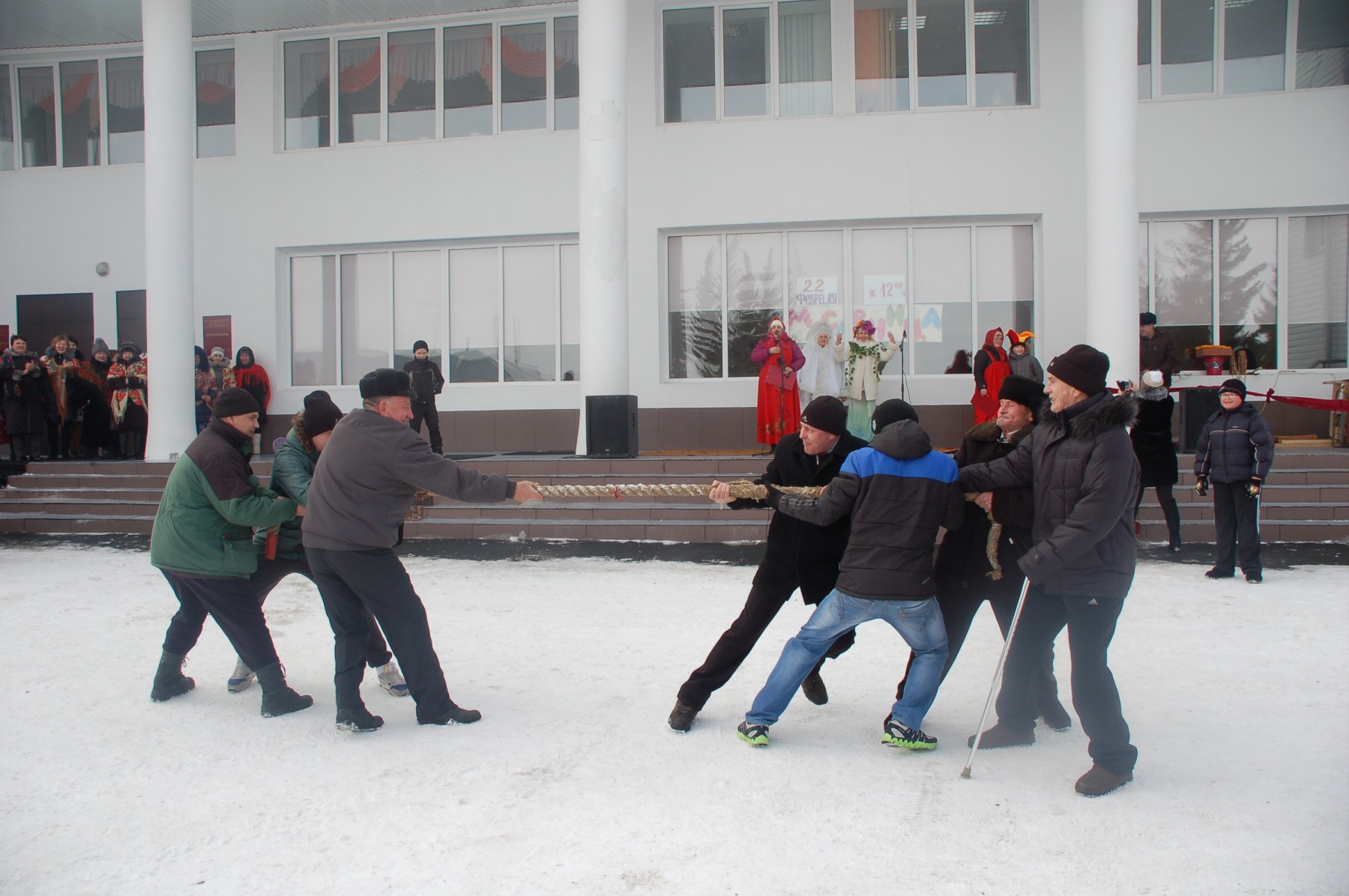 Ребята отвечали на вопросы, угадывали загадки, пели песни. Участвовали в игре «Гори, гори ясно!» и конкурсе «Перетягивание каната».