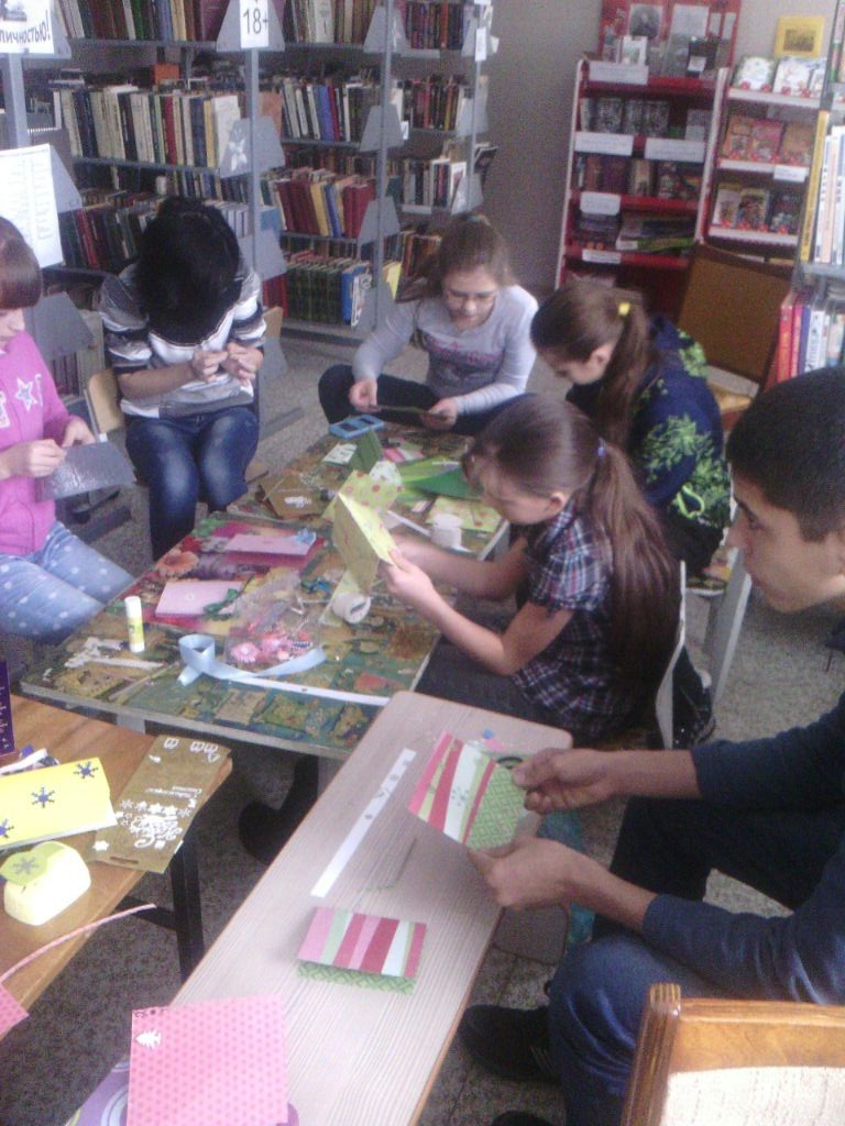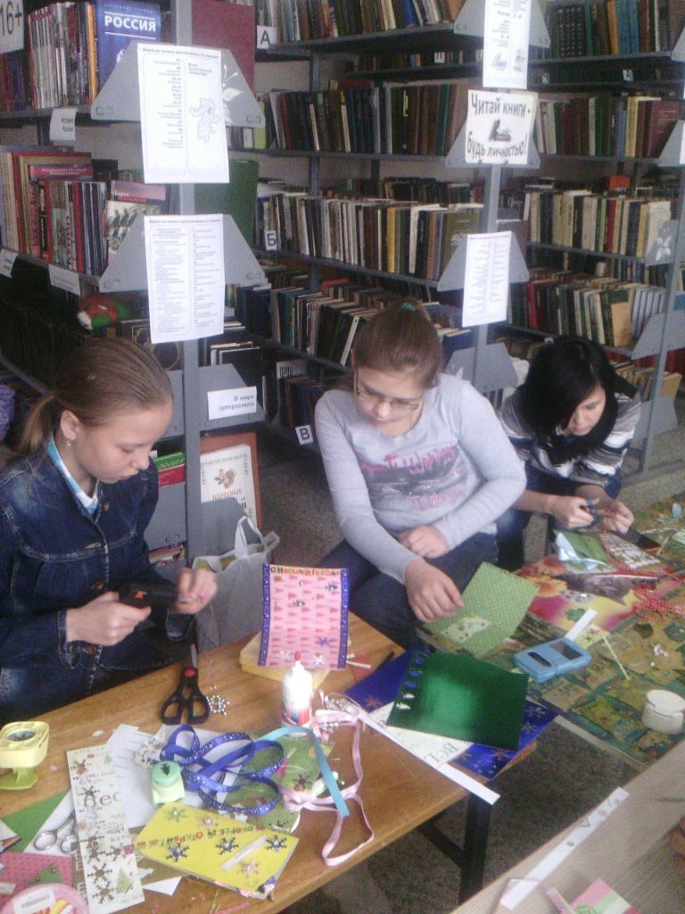 5 ноября 2015 года в библиотеке № 10 п. Красное Поле прошел мастер-класс по созданию рождественской открытки.
