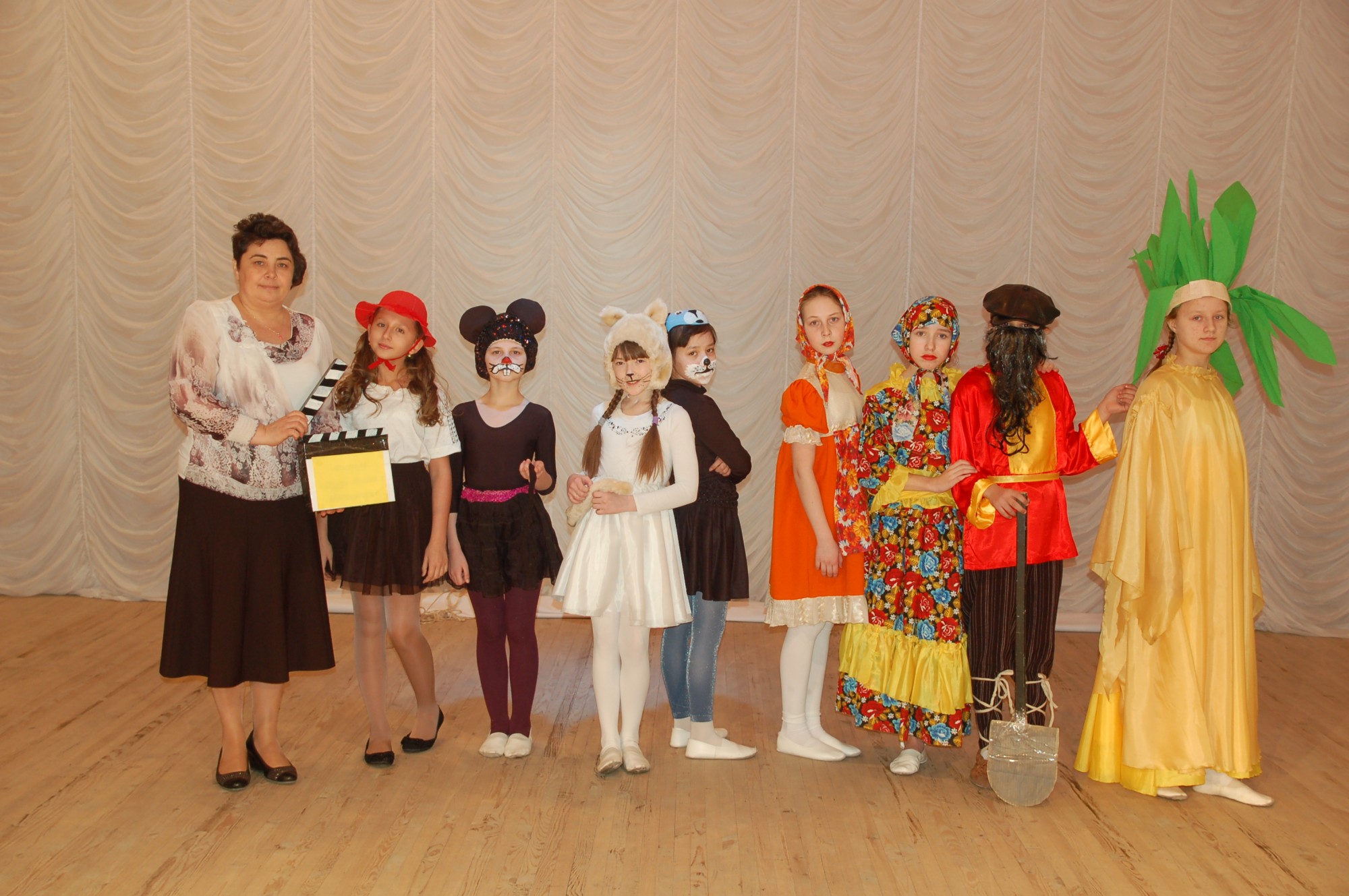 Школьники приняли участие в сценке под названием «Кто кого покусает!». Танцевальная группа "Россияночка" приготовила музыкальную сказку «Репка». Все вместе спасали красную шапочку от серого волка - всё закончилось хорошо, красная шапочка добралась до дома и подарила ребятам песню.