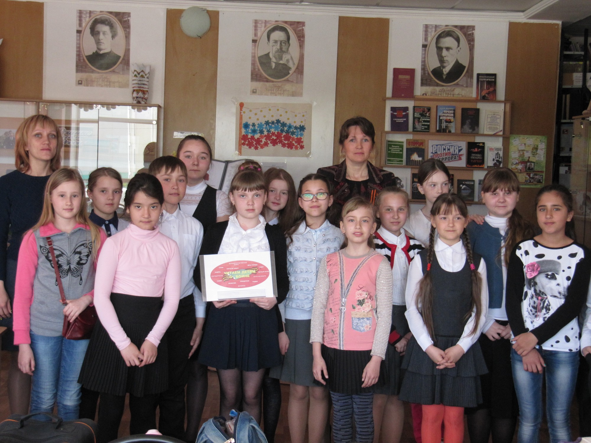 Центральная детская библиотека 4 мая 2016 г. приняла участие в VII Международной Акции «Читаем детям о войне». С учащимися 4-го кадетского класса было проведено громкое чтение рассказов-горошин о войне с обсуждением. Ребята рассказали о памяти в своей семье: о родных и близких, внесших свой неоценимый вклад в Победу своими боевыми подвигами и тяжёлым трудом в тылу.