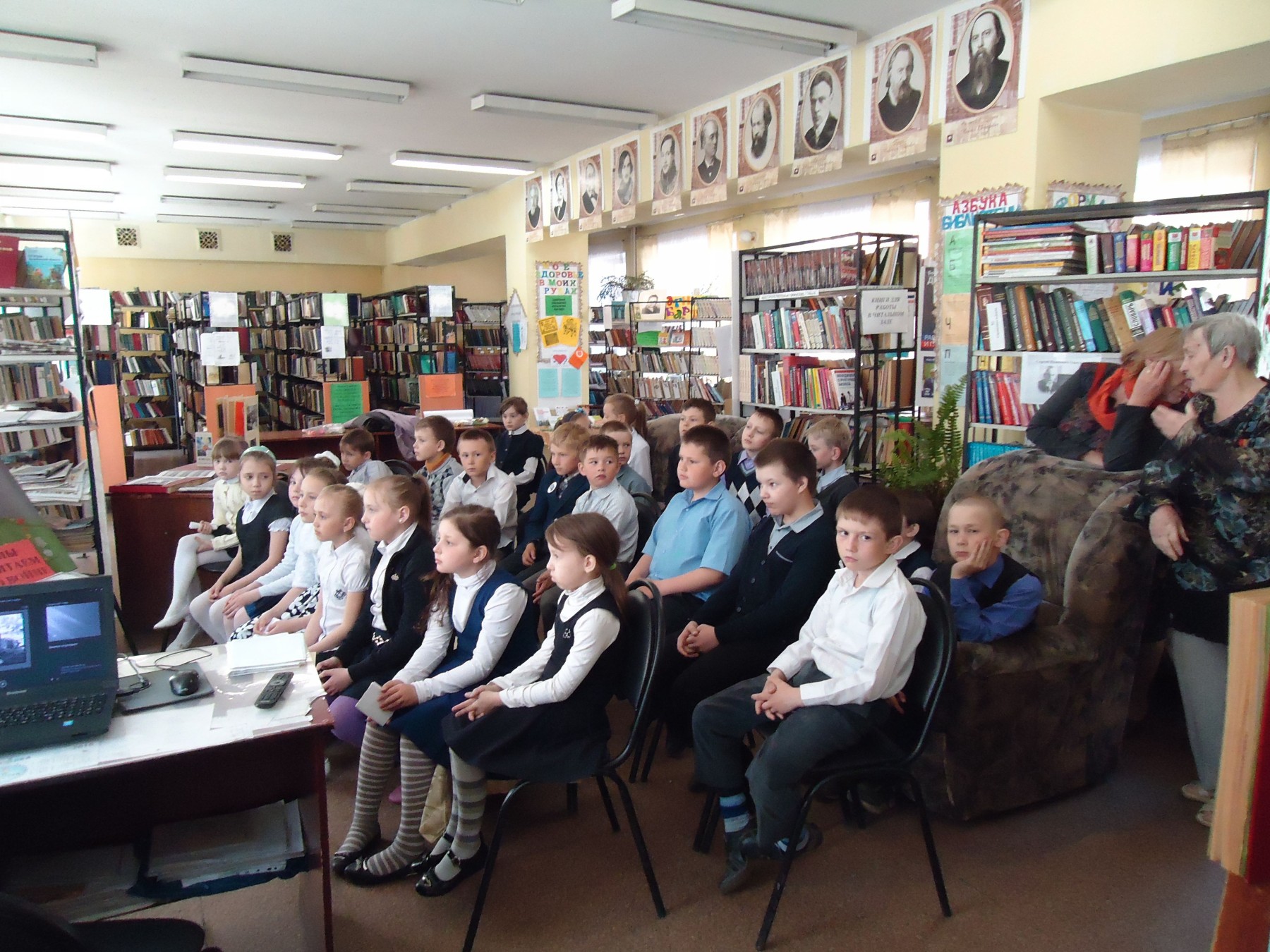 Школьники узнали о событиях Великой Отечественной войны, о пионерах-героях, о ветеранах – земляках, прочитали стихи, прослушали песню «Ах война, что ты сделала подлая». Председатель организации «Память сердца. Дети погибших защитников Отечества» Л.А. Горбовая рассказала ребятам об альбомах с фотографиями и информацией об участниках Великой Отечественной. Завершился познавательный час исторической викториной.