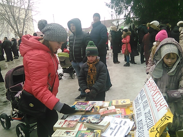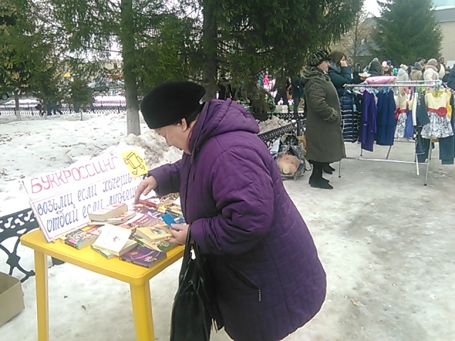 Смысл акции состоит в том, что книга не должна пылиться на полках, а должна быть свободной и переходить от читателя к читателю. Сотрудники внестационарного отдела Центральной библиотеки специально вынесли книги на улицу, за пределы библиотеки. Возле Районного дома культуры, в день празднования Масленицы, поставили стол, на котором разместили книги и журналы для раздачи их односельчанам.