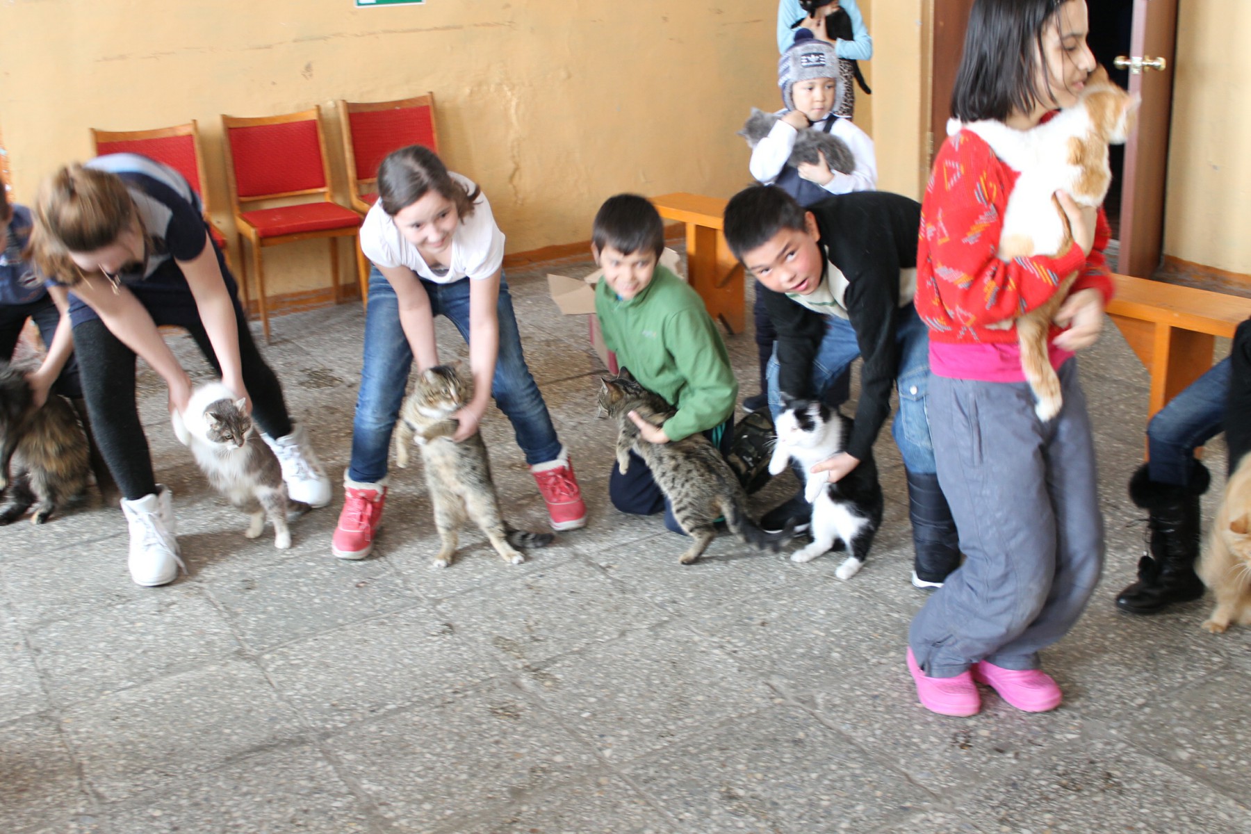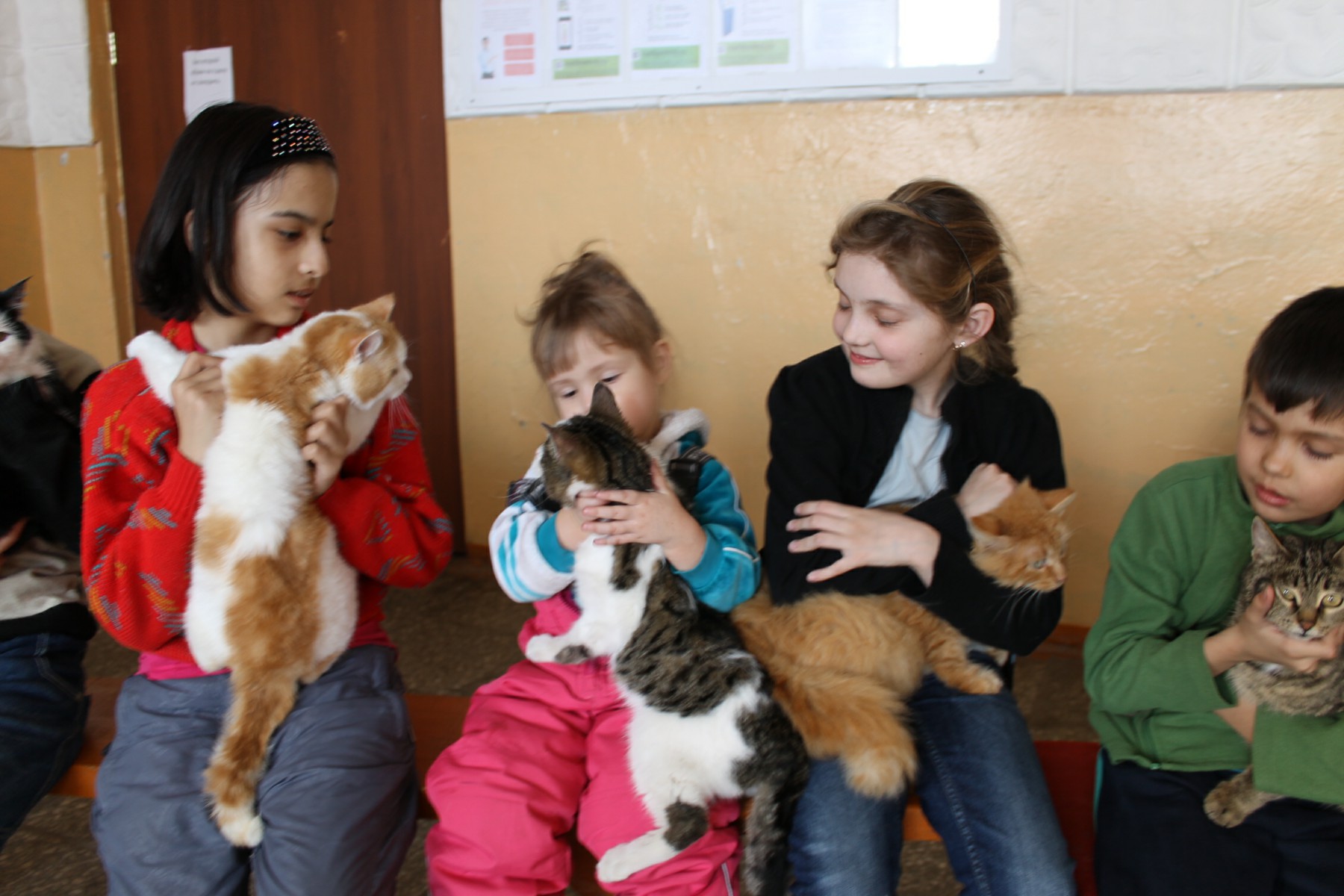 На мероприятии присутствовало 20 детей, от 3 до 11 лет, и 14 котов и кошек разного возраста и всевозможных окрасок.