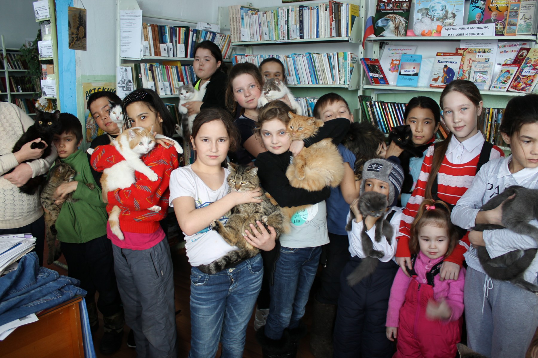 1 марта 2017 года в библиотеку с. Архангельское пришли необычные гости – 14 котов и кошек.