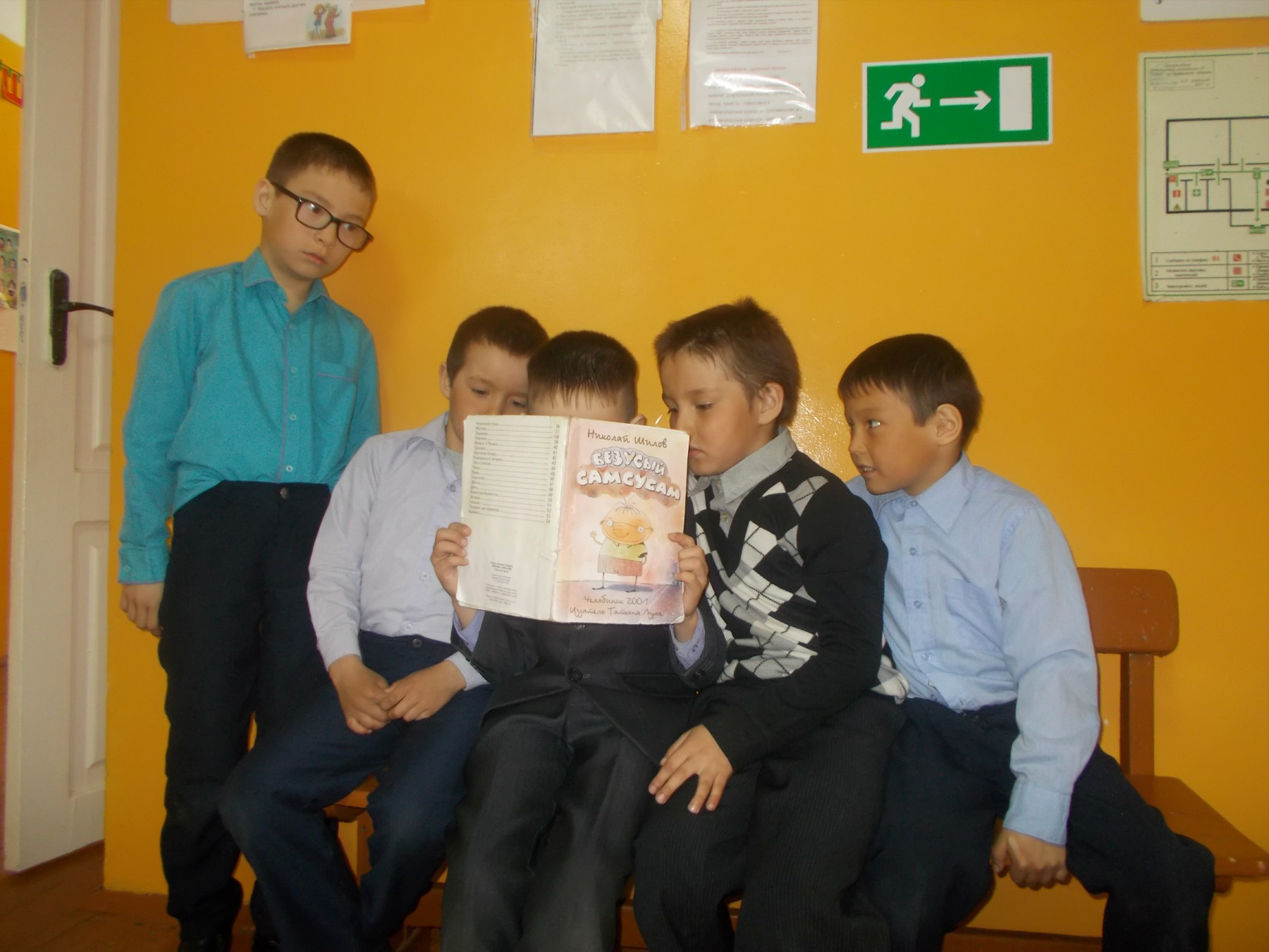 Библиотека № 11 д. Мамаево маленькая, поэтому стихи читали и в классах, и в коридоре, и в дошкольной группе. Конечно же, всем хотелось сфотографироваться с книгой, ведь стихи Николая Шилова смешные и очень интересные для любого возраста.