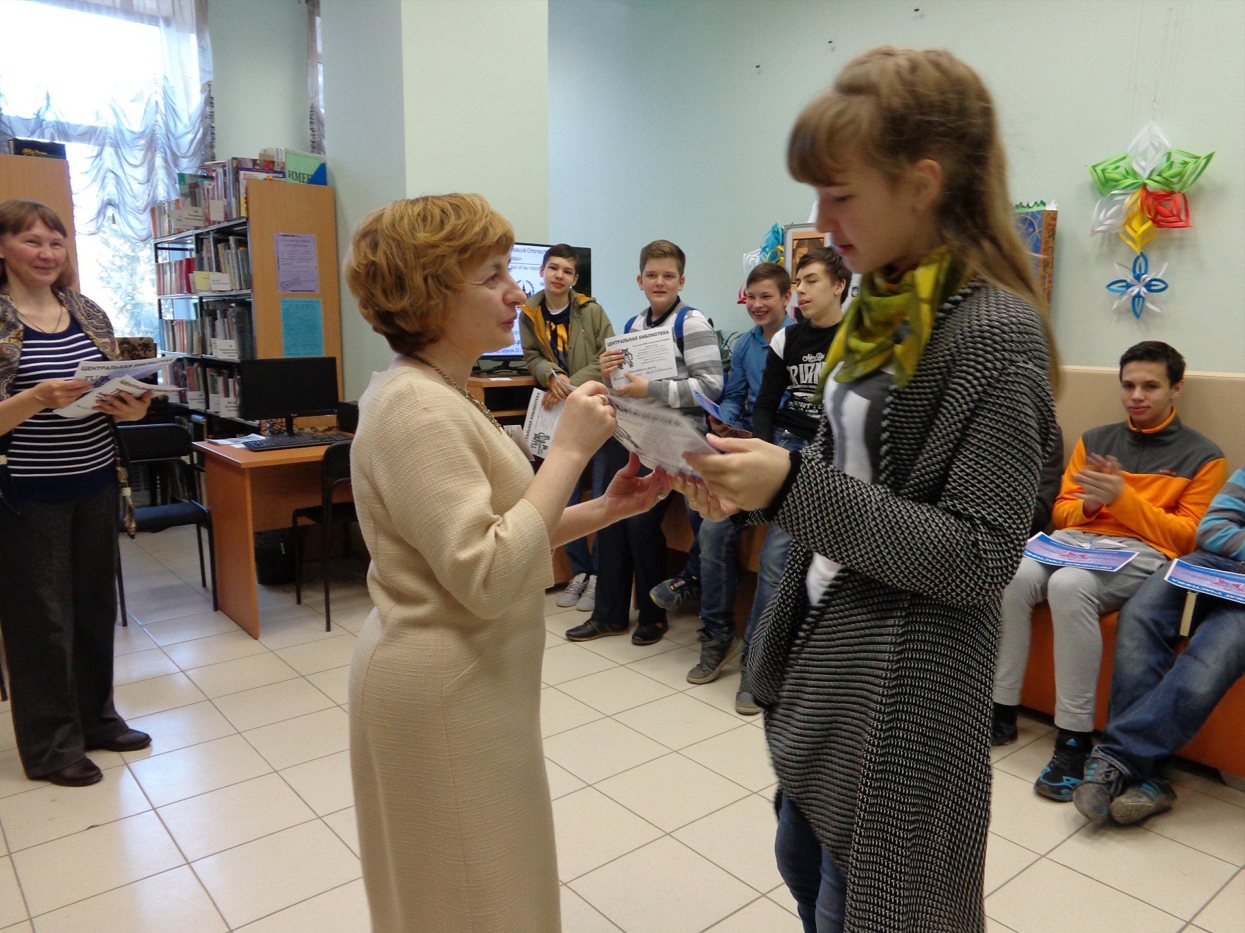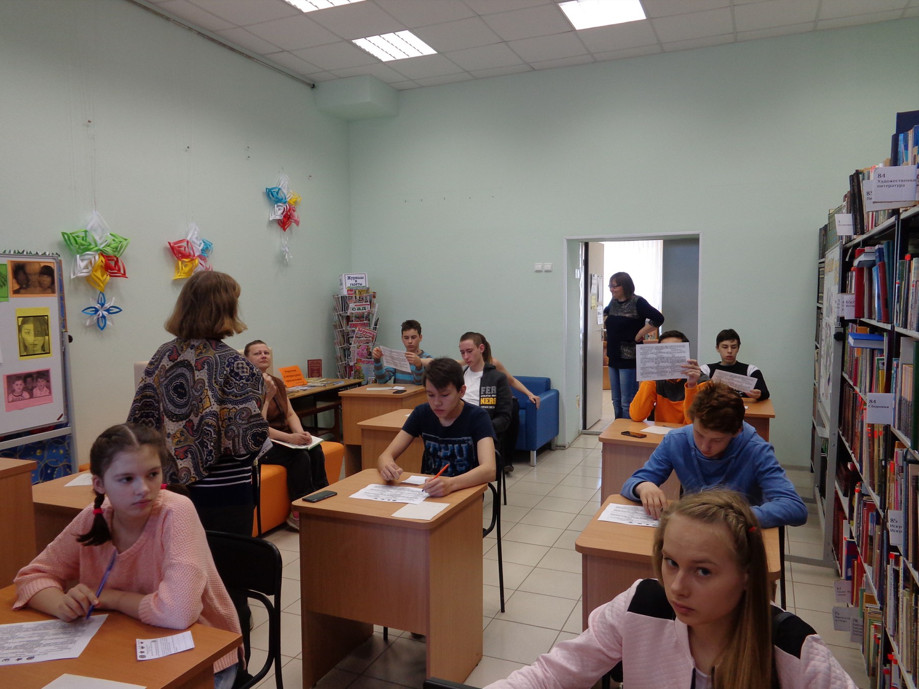 В Центральной библиотеке в Акции участвовали 19 учащиеся Долгодеревенской СОШ 14-15 лет. Перед началом тестирования с приветственным словом выступила заместитель начальника Отдела культуры Татьяна Пономарчук, отметив значимость Акции, пожелала бодрости духа и успеха участникам тестирования. Прослушав инструктаж от Елены Сойновой, ребята приступили к выполнению теста в присутствии наблюдателей и не пользуясь никакими дополнительными источниками информации.