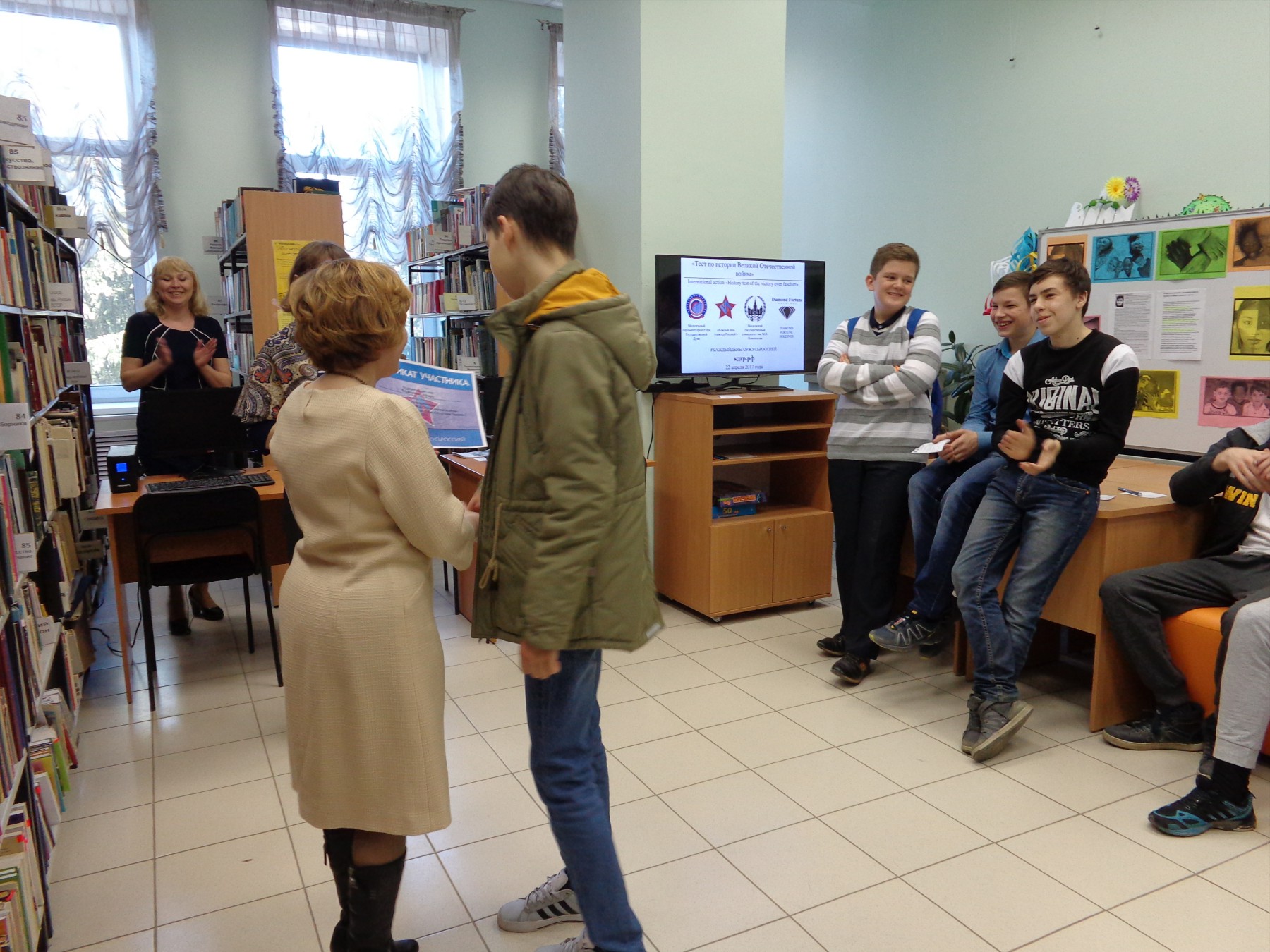 Около 100 сосновцев и 7 библиотек района стали участниками Международной акции "Тест по истории Великой Отечественной войны», приняв участие в масштабном историческом тестировании, которое прошло по всей России и за рубежом 22 апреля 2017.