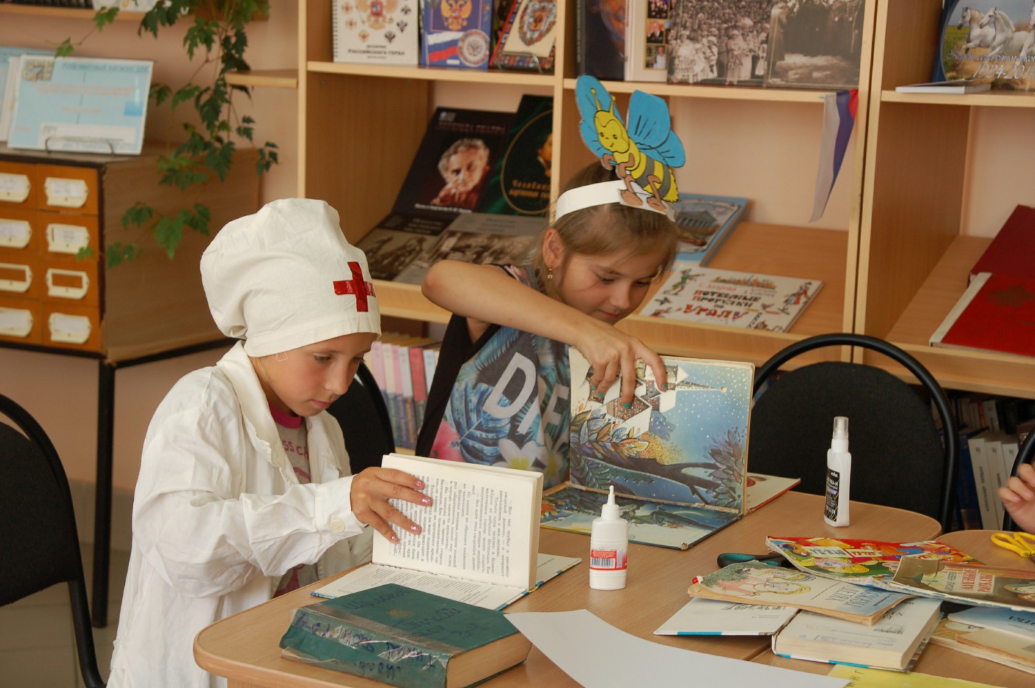 Для ребят это стало увлекательной игрой, с помощью которой можно сделать полезное дело. Итогом работы «Книжкиной больницы» стала выставка «Эти книги мы вылечили сами!», оформленная совместными усилиями.