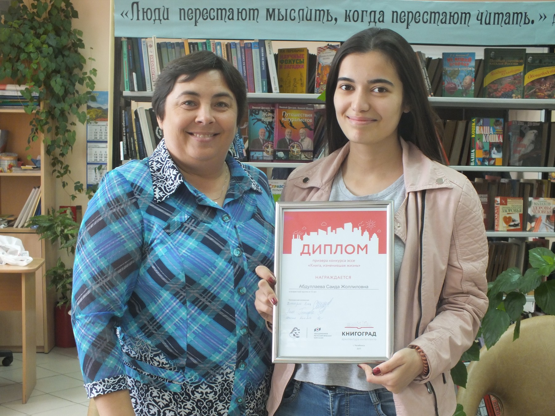 Абдуллаевой Саиде за сочинение вручили диплом призёра конкурса «Книга, изменившая жизнь», и памятные подарки.