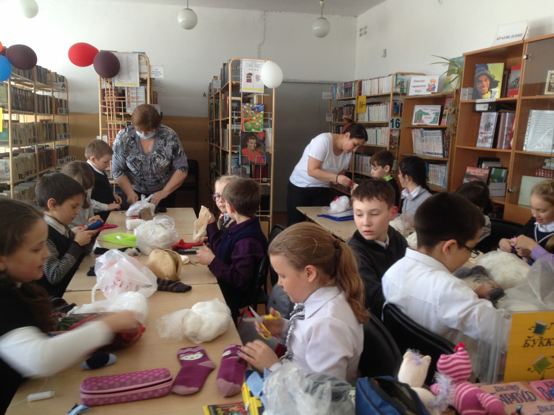 Совместно с руководителем детского кружка «Оч. умелые ручки» Татьяной Зайцевой школьники изготовили из носков мягкую игрушку – кошечку. Ребята с увлечением принялись за работу. Даже мальчишки, не отвлекаясь, шили и мастерили. Получились очень милые и забавные игрушки.