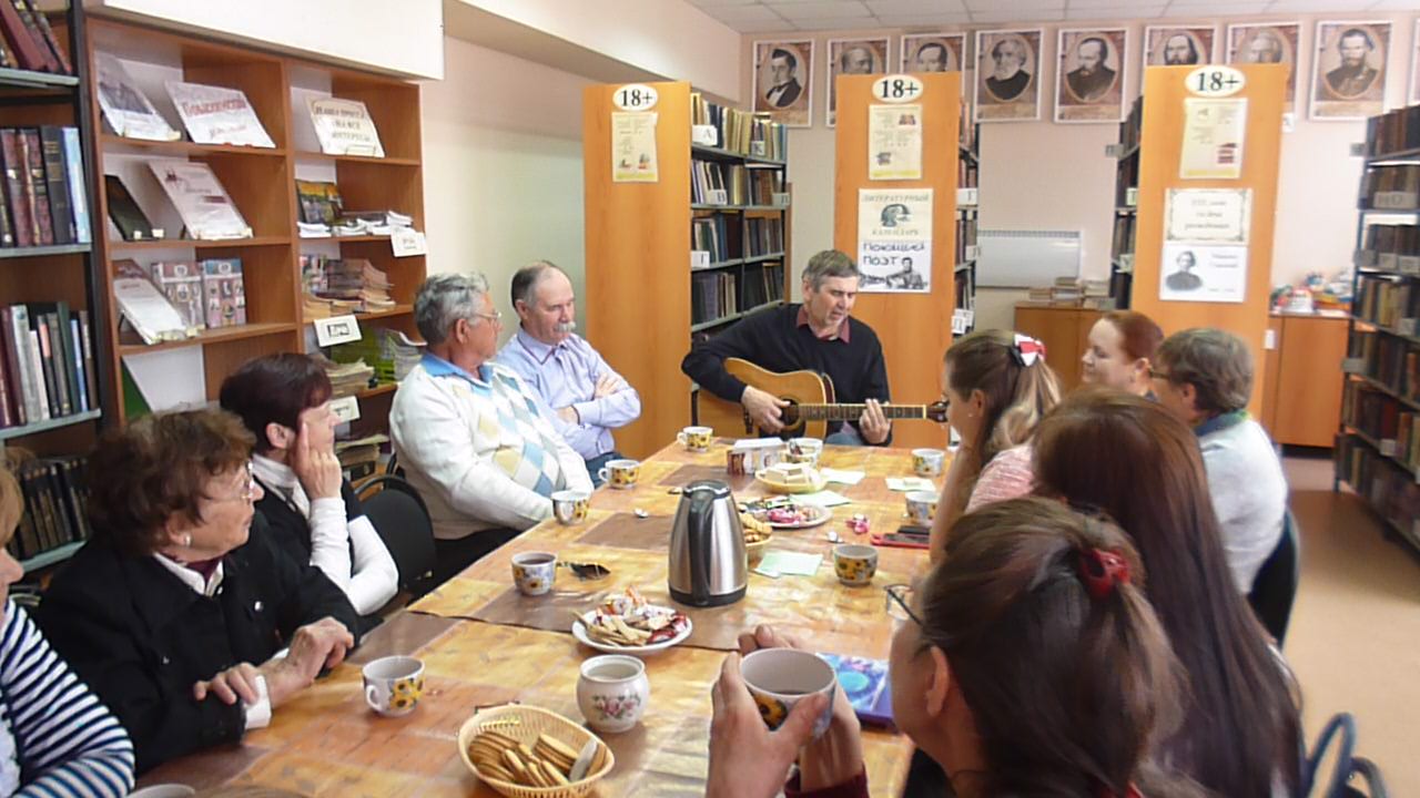 Ценители поэзии и литературы встретились за чашкой чая. Читали свои стихи, делились впечатлениями от услышанного Нина Речкалова, Юрий Пронин, Надежда Томинец, Ирина Позднякова и другие. До глубины души затронуло всех присутствующих стихотворение Азалии Юсуповой, посвящённое недавней трагедии в Кемерово. Андрей Ульянов, взяв в руки гитару, создал неповторимую атмосферу авторской песни.