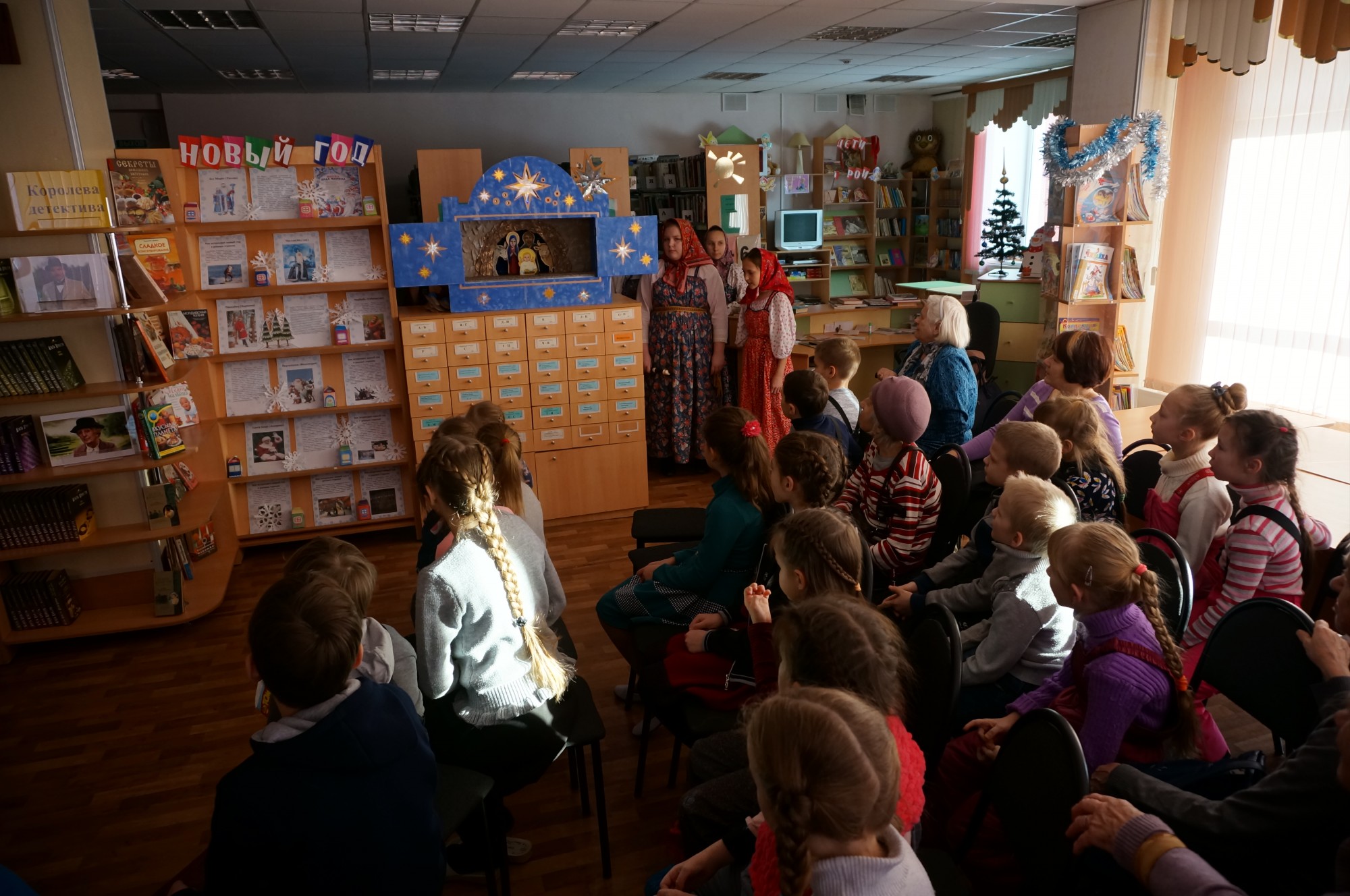 На праздничной рождественской неделе в библиотеке собрались читатели, в гости к которым пришли ребята фольклорного ансамбля «Вереюшка». Звучали рождественские песни, колядки, и самое главное – впервые жители п. Рощино увидели представление вертепного театра, рассказывающего о рождении Иисуса Христа. В библиотеке царила торжественная атмосфера добра, радости и душевной теплоты. По традиции светлого праздника Рождества участники и гости получили сладкие гостинцы.