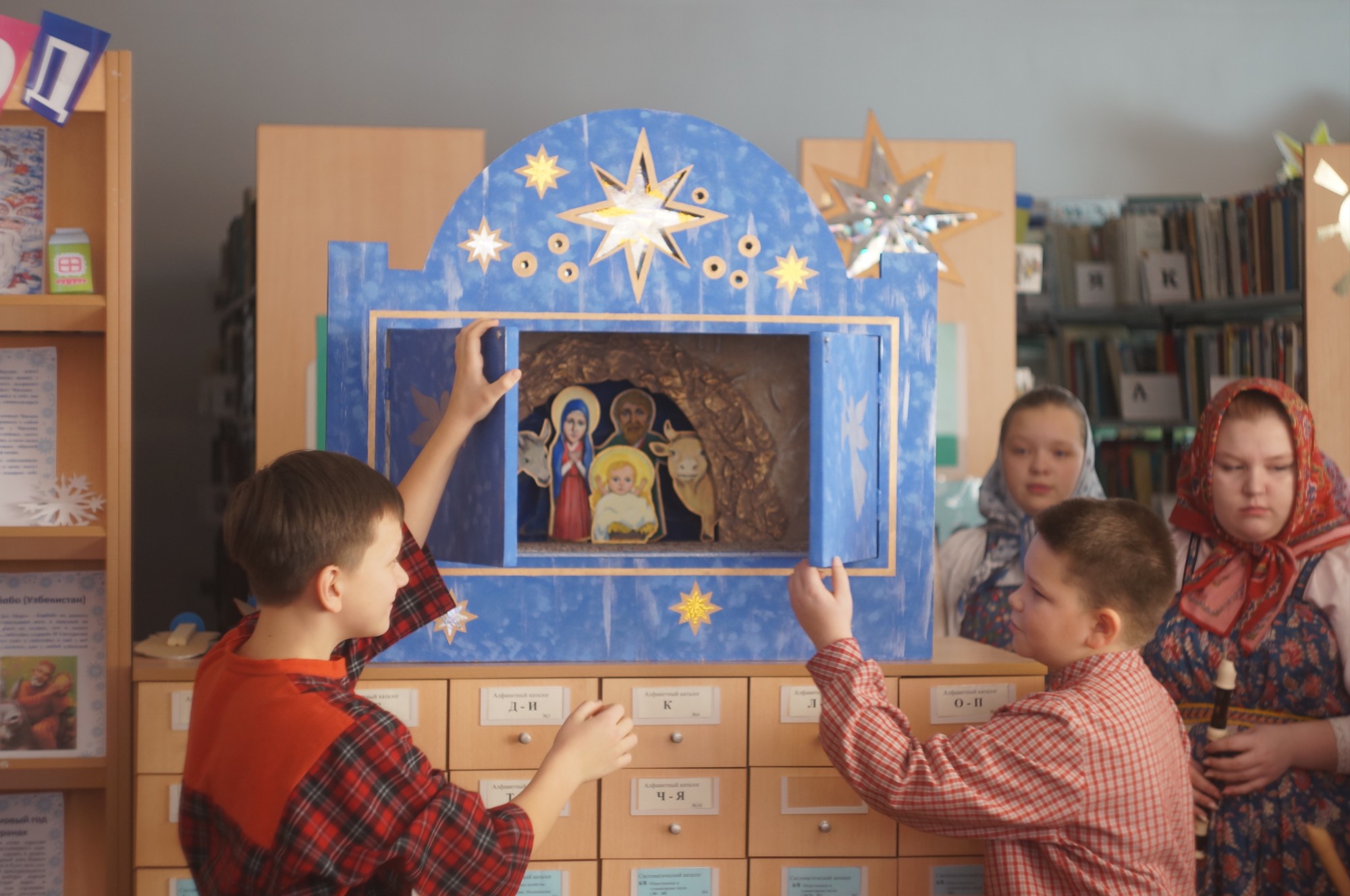 10 января в библиотеке п. Рощино состоялось выступление вертепного театра.