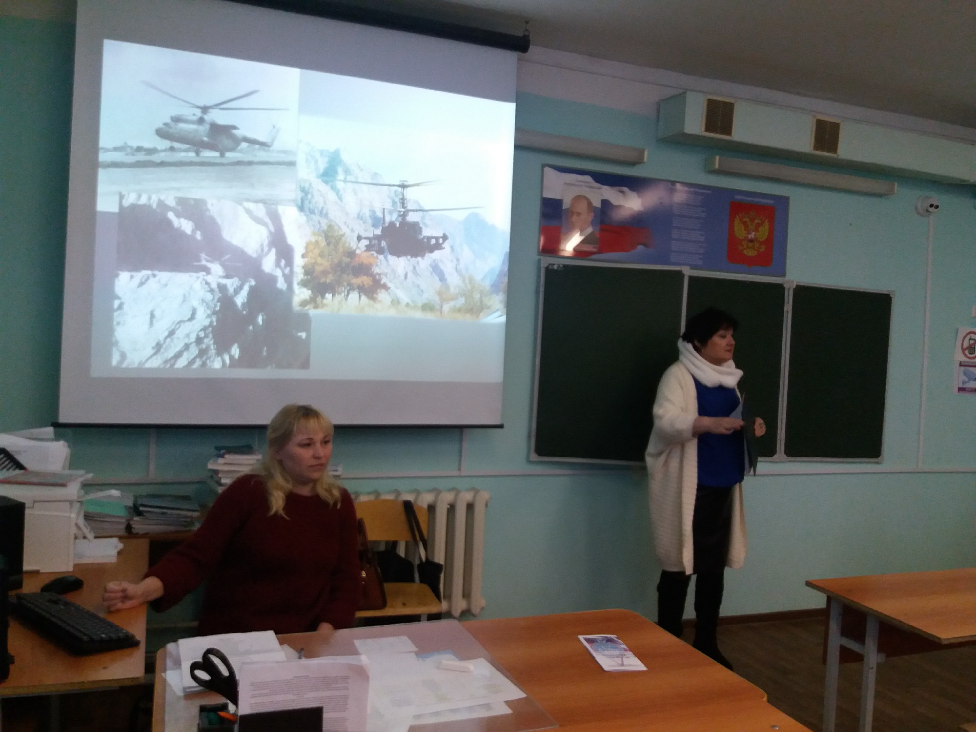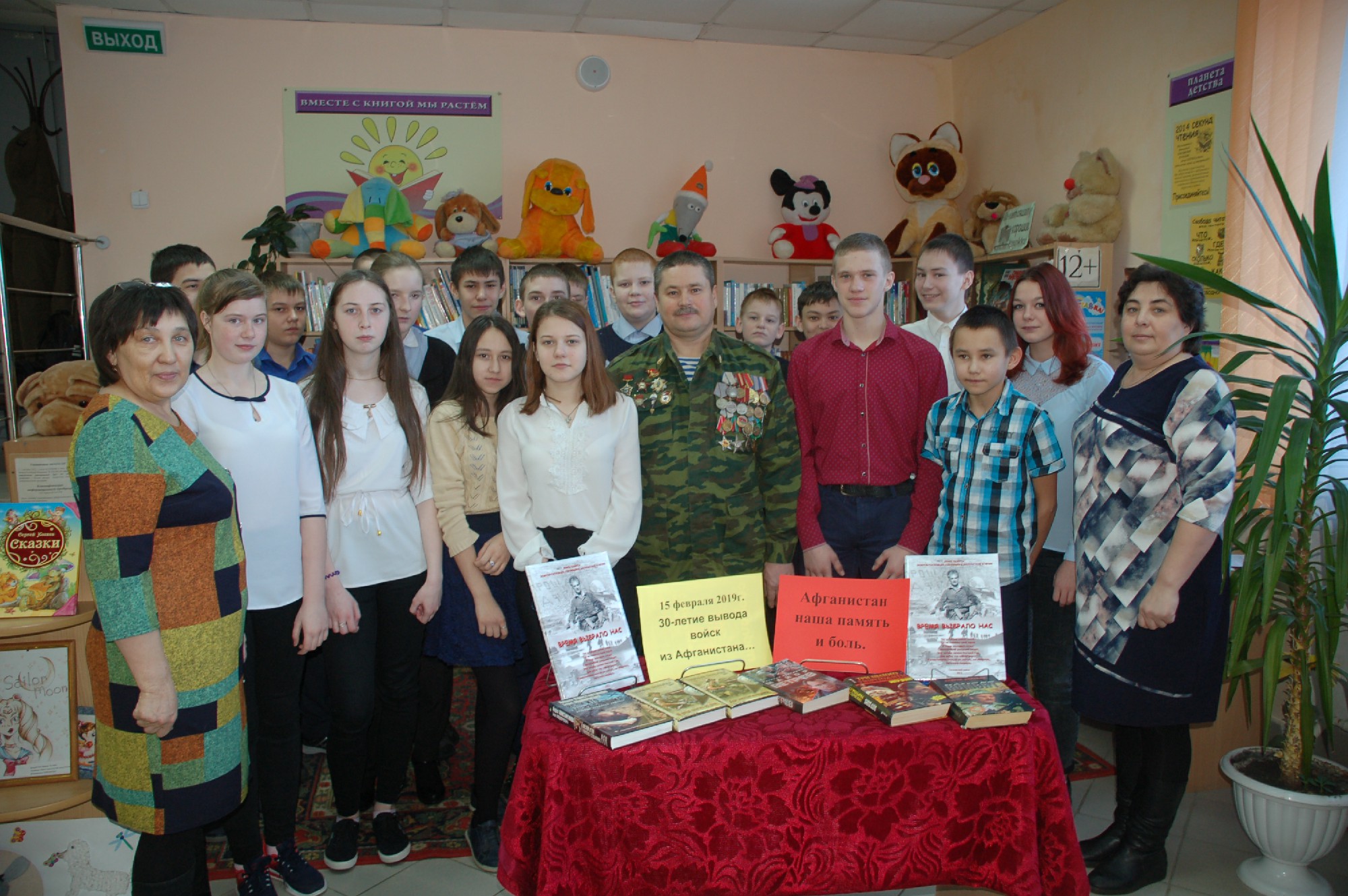 21-22 февраля внестационарный отдел МКУК МЦБС совместно с Историко-краеведческим музеем провели патриотический урок «Живая боль, Афганистан», к 30-ти летию вывода войск из Афганистана, для школьников 11 классов Долгодеревенского СОШ.