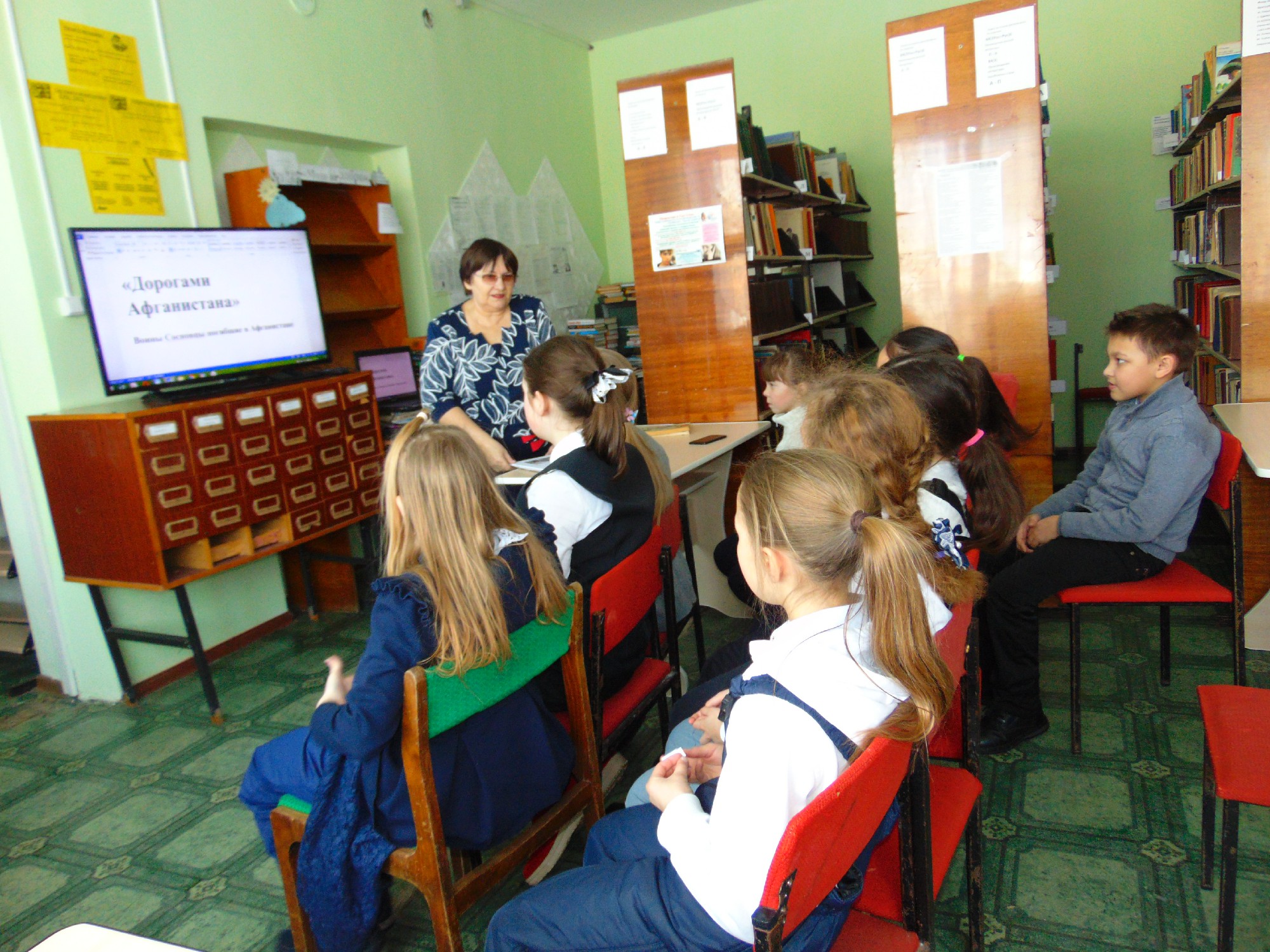 В Трубненской сельской библиотеке для учащихся 3-го класса прошел час патриотизма «Отечества достойные сыны». Библиотекарь познакомила ребят с историческими событиями войны в Афганистане.