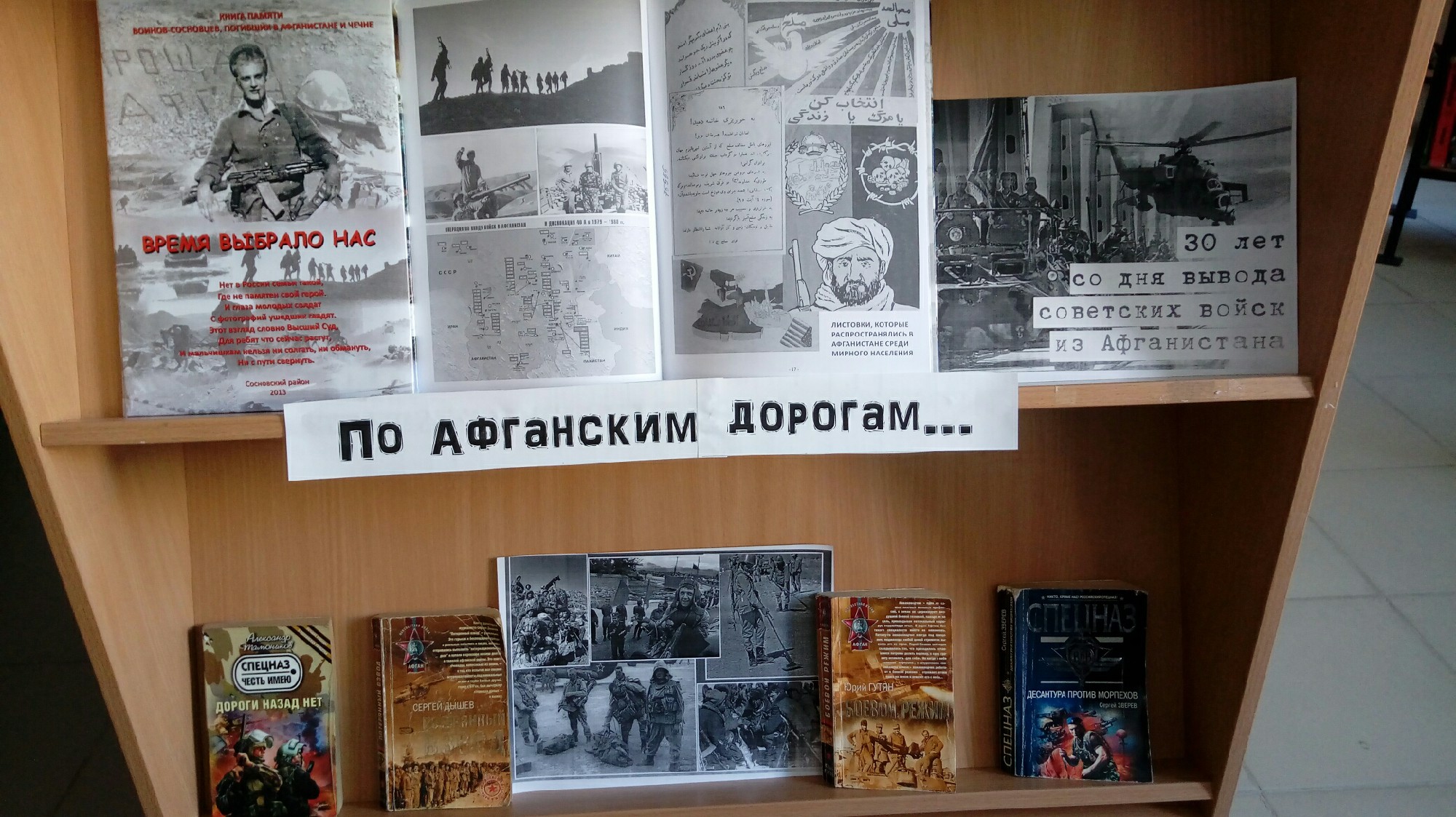 15 февраля в библиотеке п. Рощино проходила музыкально-патриотическая акция «По дорогам Афгана». К этой дате в библиотеке была оформлена выставка «Эхо Афганской войны», на которой представлены документальные материалы, фотографии, книги об этой войне. Акция не оставила равнодушным ни одного из наших читателей, посетивших в этот день библиотеку.