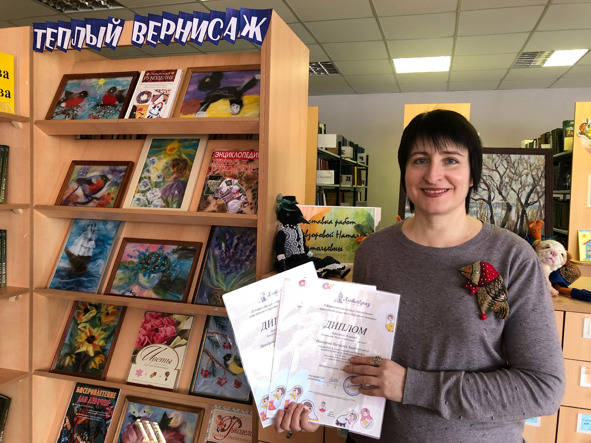 Вторые места во Всероссийском конкурс декоративно-прикладного искусства «Народные мотивы» по праву заняли работы преподавателя ДШИ п. Рощино Натальи Невзоровой. Хранительница кладовой, Сорока Лора, новогодние игрушки и многие другие работы не оставили равнодушными наших читателей.