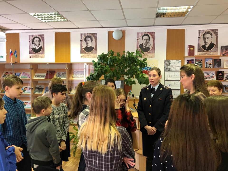 5 марта в библиотеке п. Рощино состоялась встреча школьников с инспектором по делам несовершеннолетних ОМВД России по Сосновскому району капитаном полиции Марией Добрыниной.