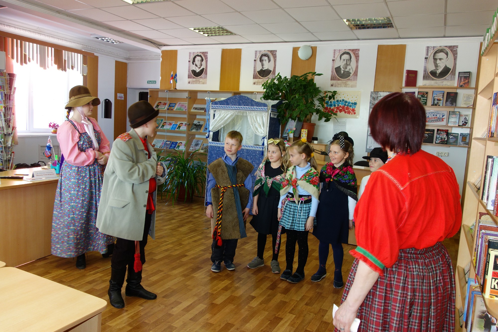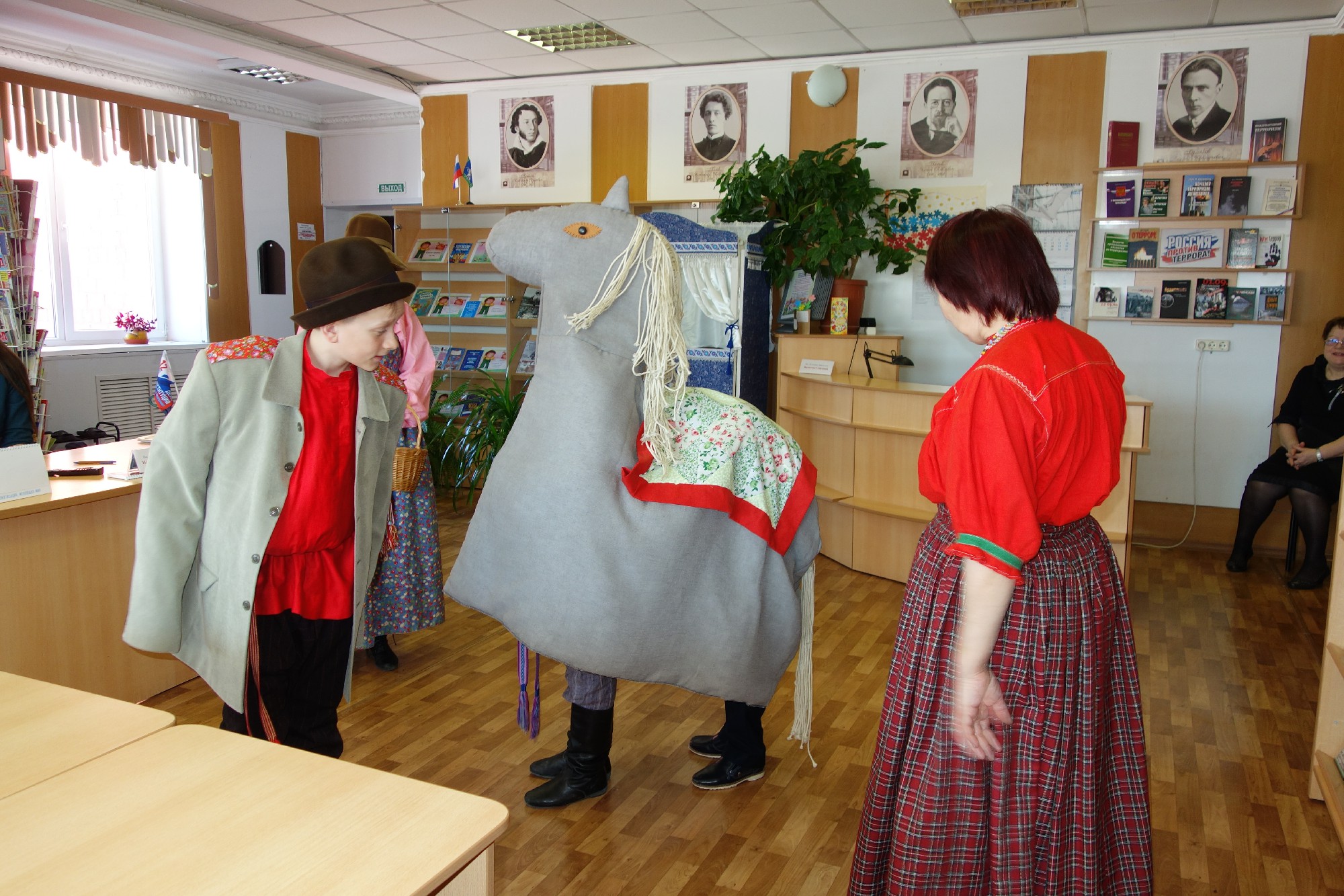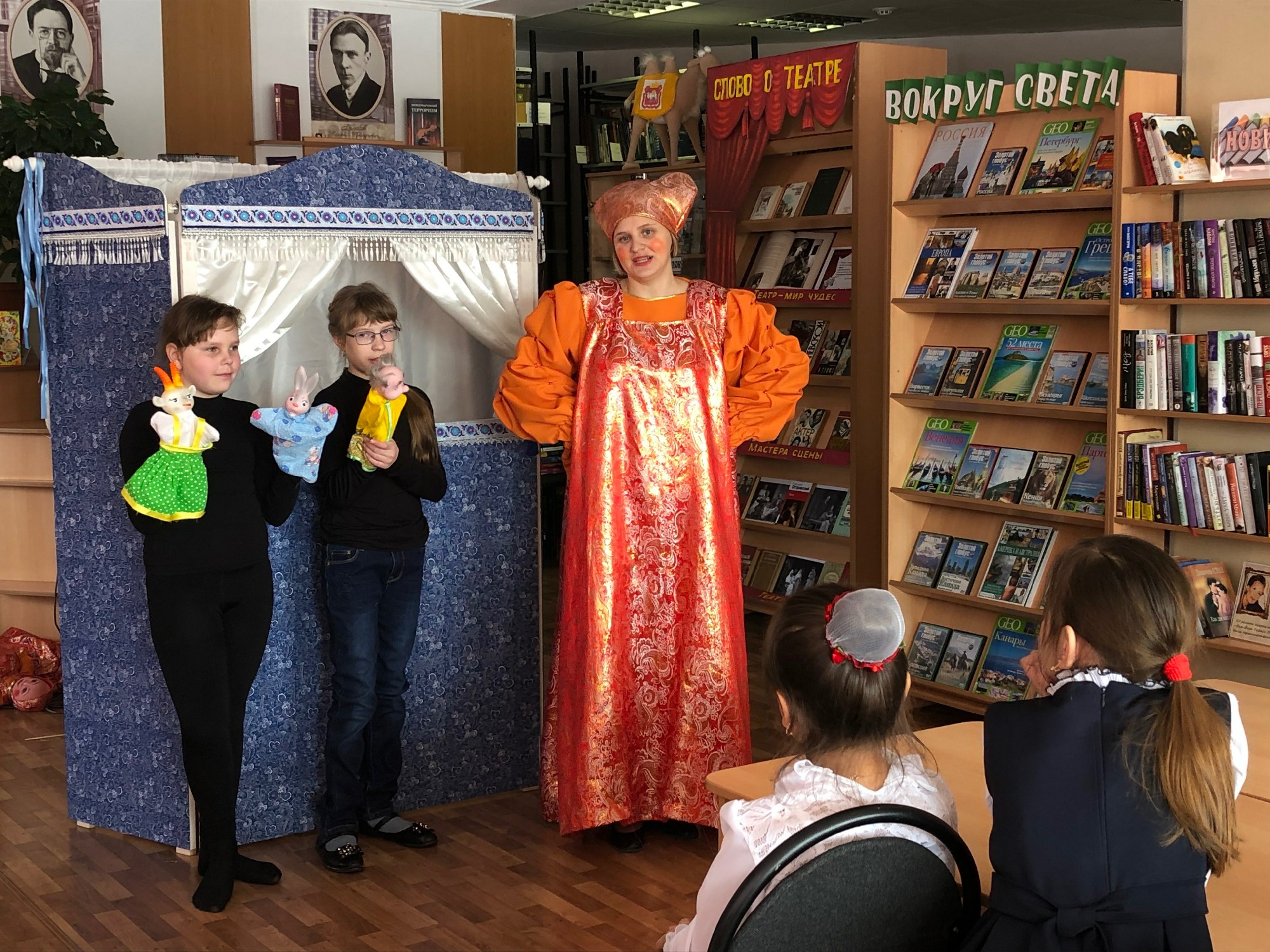 В этом году на мероприятиях, посвященных Неделе детской книги и Году театра, ребятами фольклорного отделения под руководством Любови Шмаковой и Ксении Скворцовой были проведены уроки народной культуры и быта «Во горенке, во светелке». Ребята фольклорного отделения рассказывали народные сказки, притчи, прибаутки, пели колыбельные, а игра на музыкальных народных инструментах и задорные частушки еще больше подняли всем настроение. Очень понравилось выступление кукольного театра театральной студии «Арлекино» Рощинского ДК под руководством Ольги Зыряновой. Ребята подготовили и представили всеобщему вниманию русскую народную сказку «Коза – дереза».