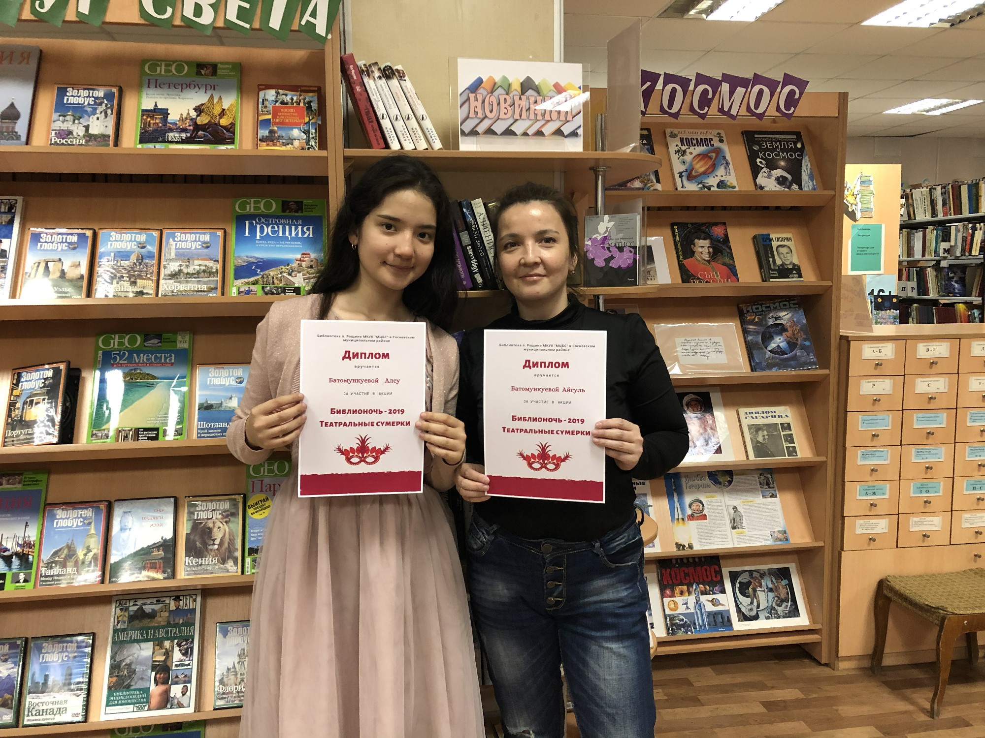 В библиотеках Сосновского района 19 апреля с 18-00 до 21-00 часов вечера проходила акция «Библионочь-2019» и посвящалась она Году театра в России и 85-летию Сосновского района, т.е. объединяющими темами были «Весь мир - театр» и «Дружба народов».