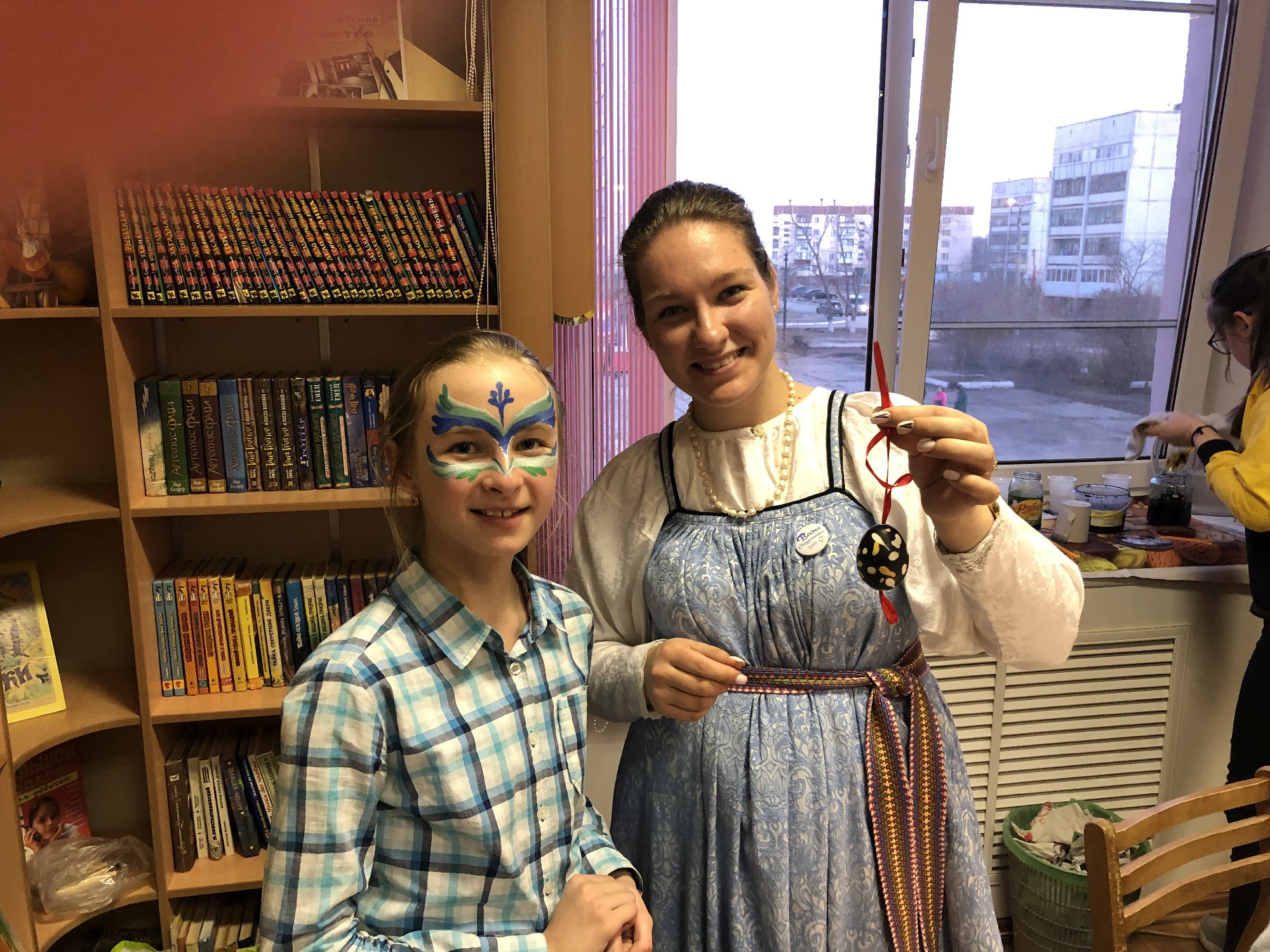 В театральной гримерке весь вечер работала ученица художественного отделения ДШИ п. Рощино Алиса Чернякова. Благодаря ее таланту и мастерству на лицах гостей библиотеки появились загадочные маски.