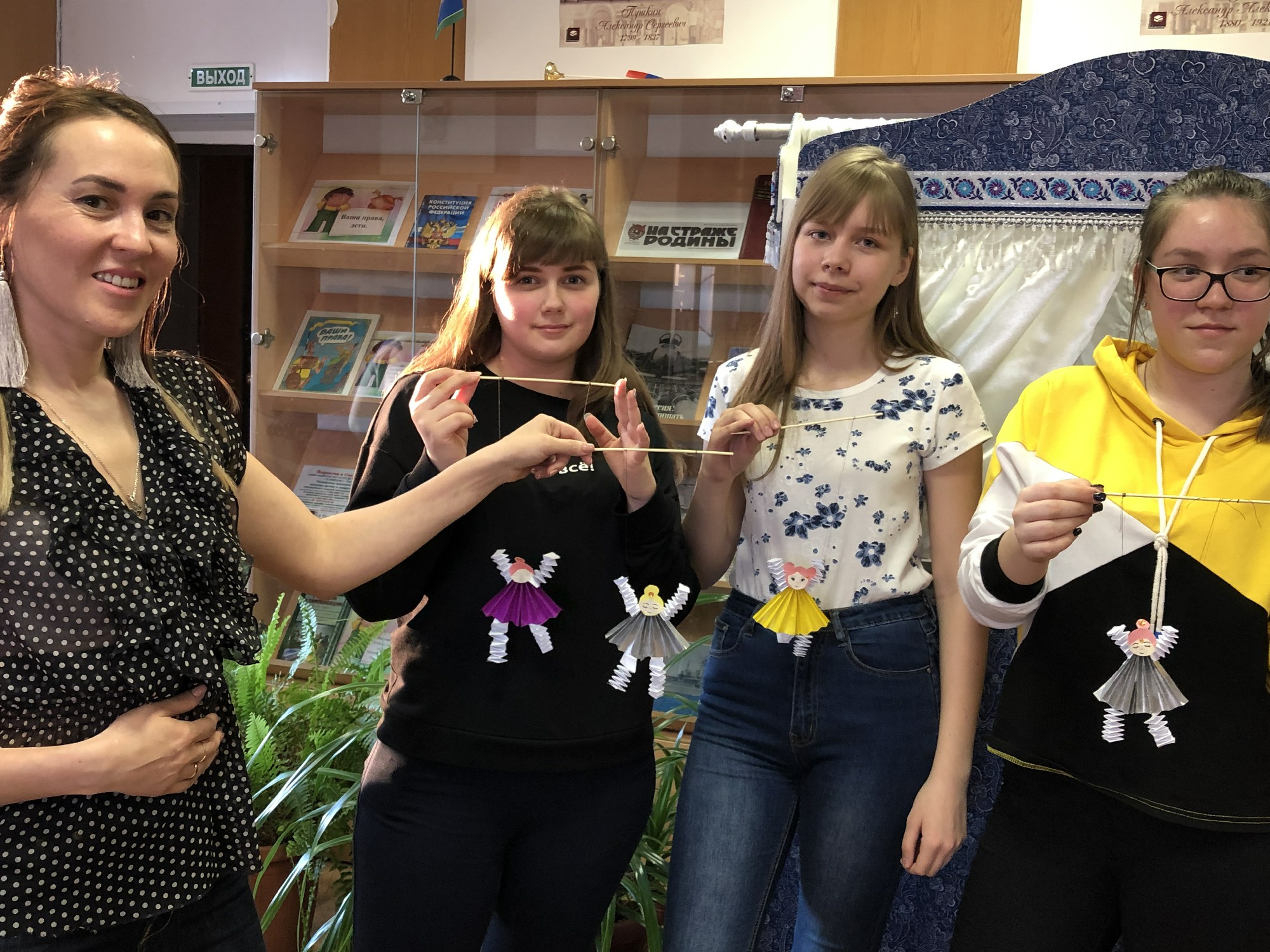 В мастерской реквизита все желающие под руководством Анны Николаевой изготовили кукол-марионеток. Забавные, интересные куклы, сделанные своими руками – замечательный сувенир на память о театральной Библионочи.