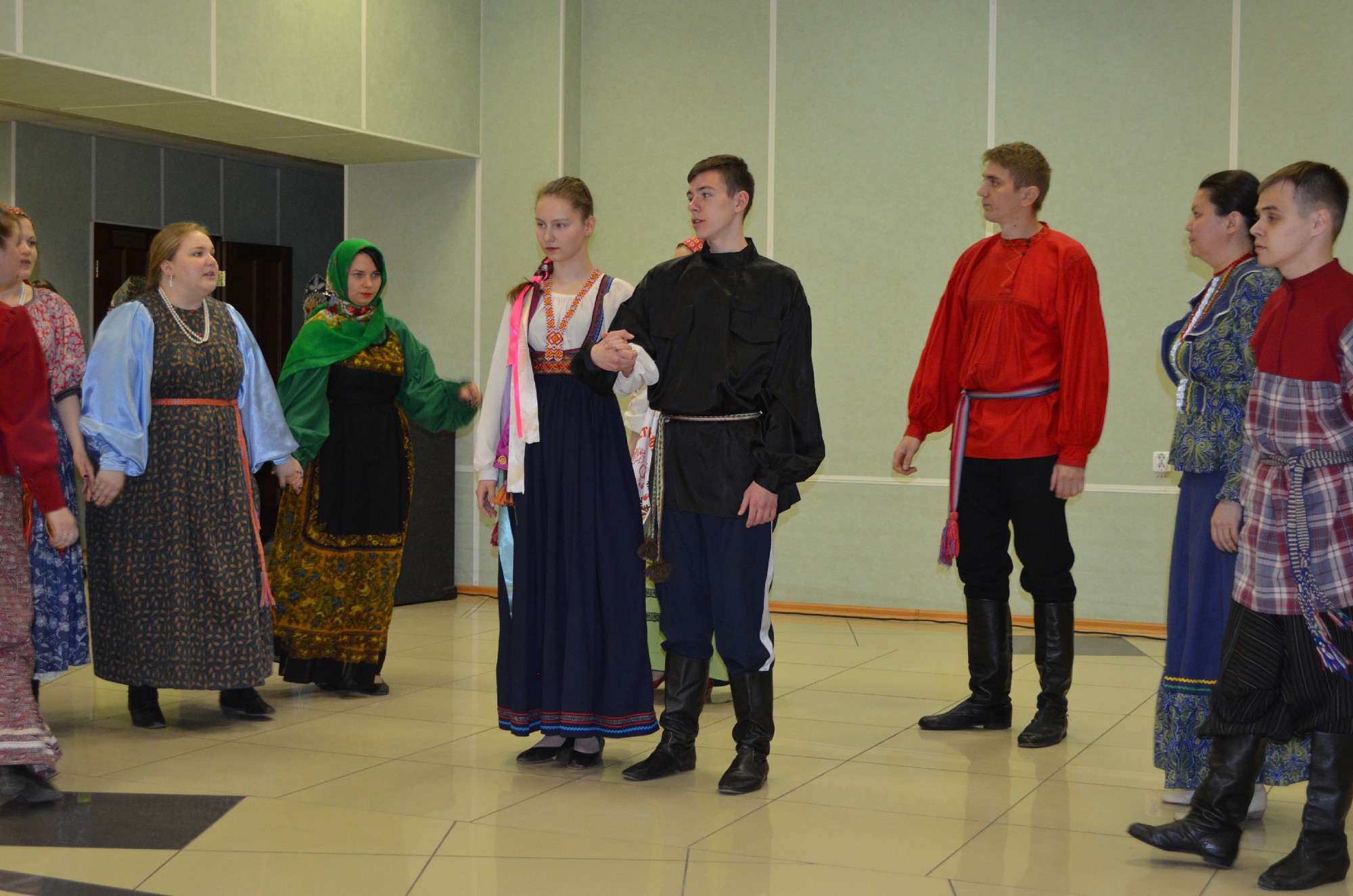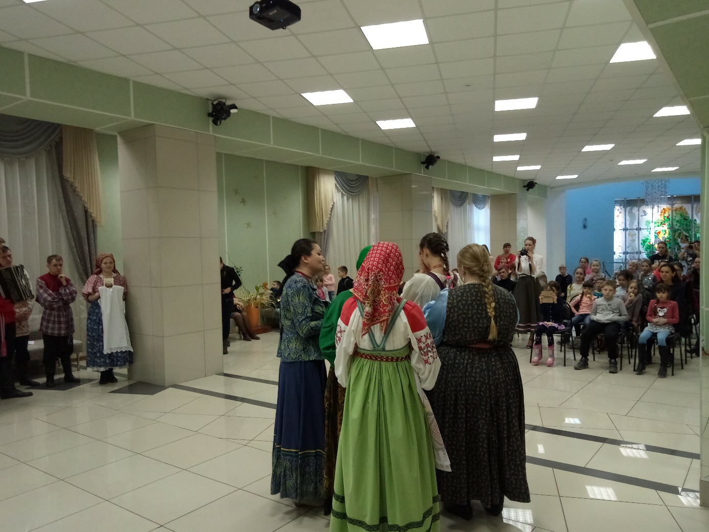 Театральная площадка продолжила свою работу в фойе 2 этажа районного дома культуры, где гости познакомились с обрядом русской свадьбы в исполнении молодёжно-фольклорного ансамбля «Услада» из п. Рощино. На этой же площадке можно было послушать эстрадно-народные песни в исполнении ансамбля «Какаду».