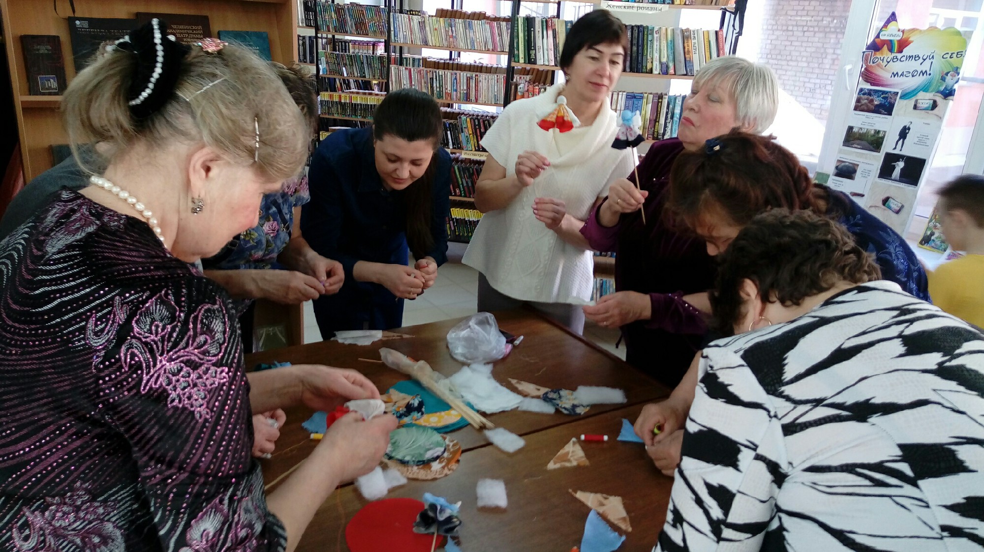 Сохранить и унести с собой частичку дружбы и тёплых отношений друг к другу представителей разных народов, живущих на Сосновской земле, помогли мастер-классы по куклам-оберегам, по созданию книжных закладок-чайников и мастер-презентация по фьюзингу.