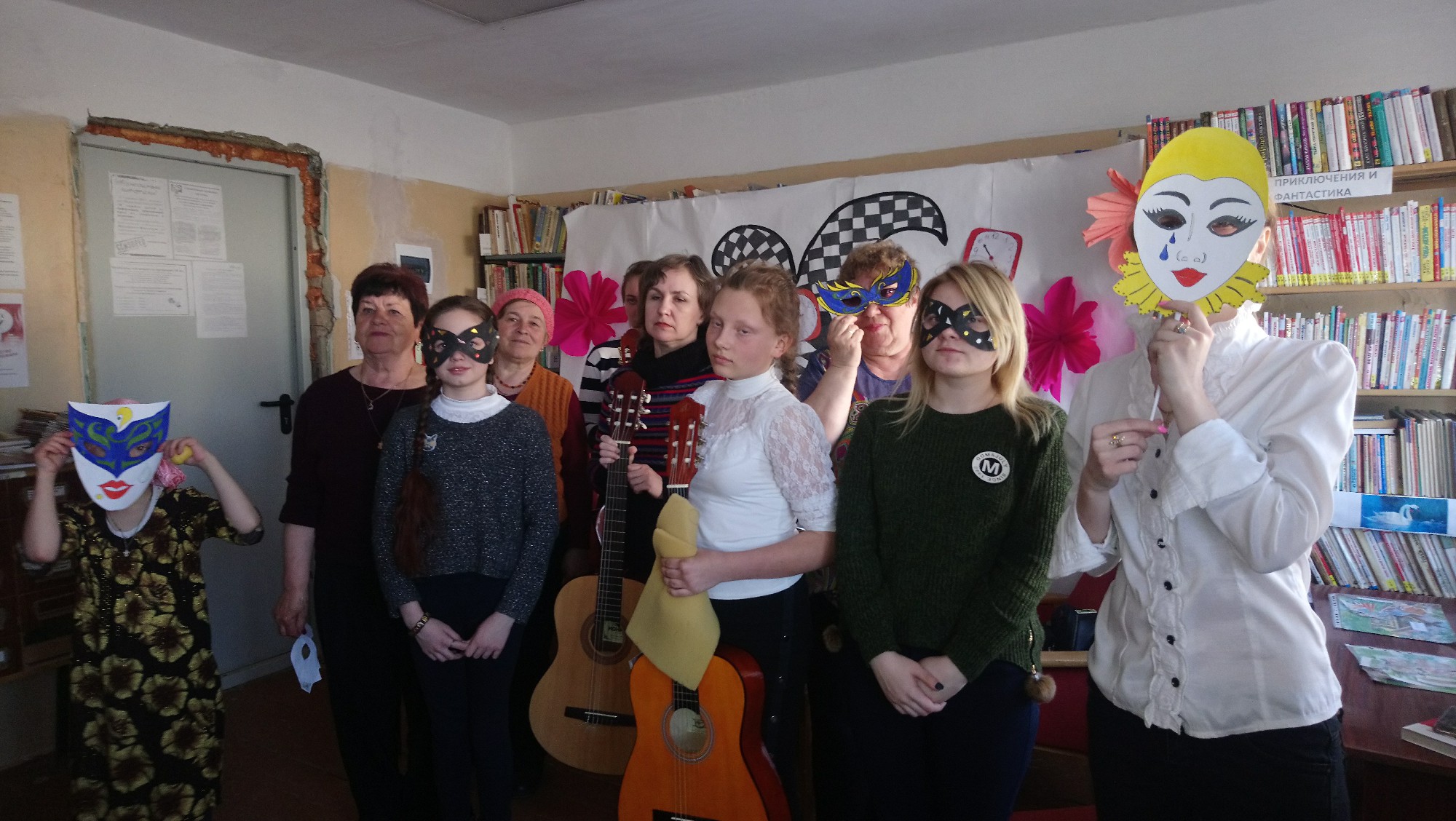 В театральной гримерке весь вечер работала ученица художественного отделения ДШИ п. Рощино Алиса Чернякова. Благодаря ее таланту и мастерству на лицах гостей библиотеки появились загадочные маски.