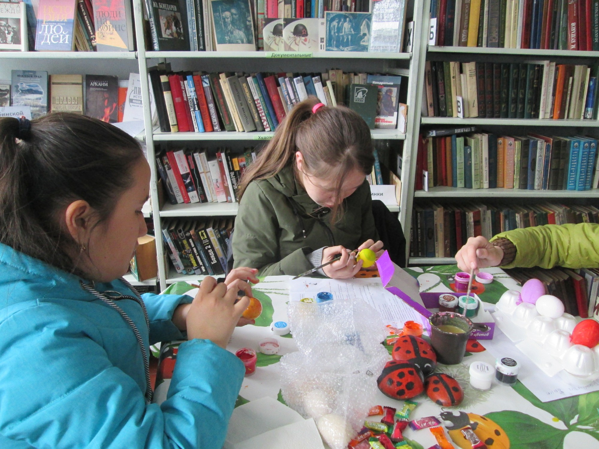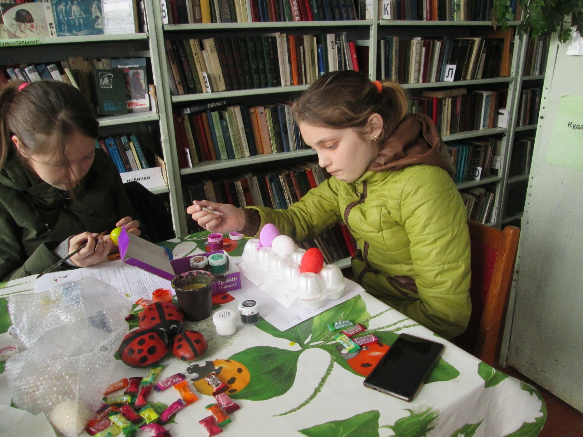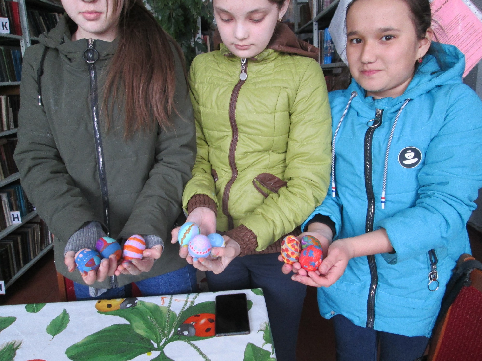 Юные читатели научились раскрашивать яйца.