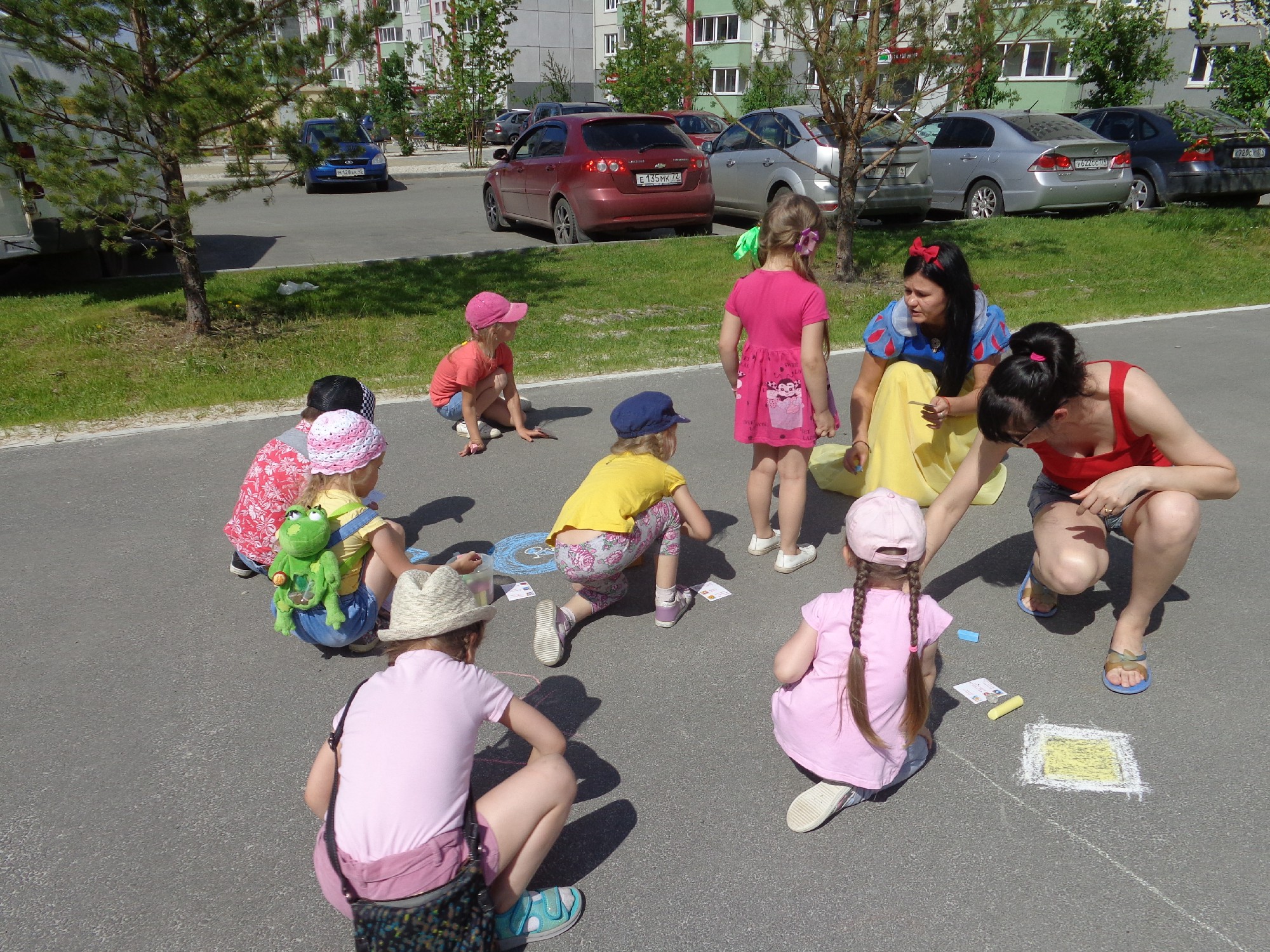 В завершение праздника, прошёл конкурс рисунков на асфальте. Дети нарисовали знаки дорожного движения, поговорили какой из знаков, что означает, вспомнили как следует переходить дорогу, как выглядит пешеходный переход, перечислили все цвета светофора.