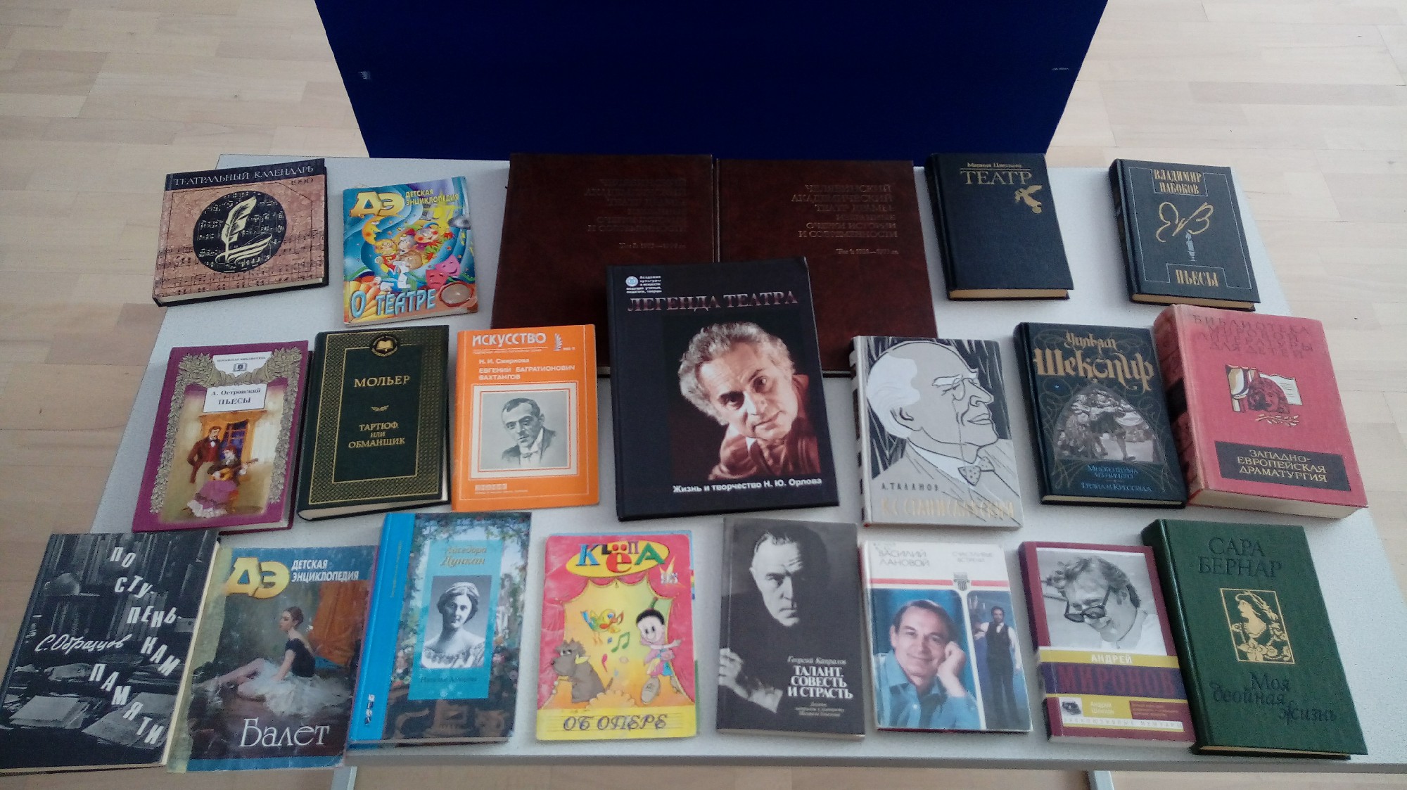 Перед входом в зрительный зал все желающие могли познакомиться с книжной выставкой посвященной театральному искусству. На выставке были представлены книги о Челябинском Драматическом театре и о Науме Орлове, об оперном искусстве и о Фёдоре Шаляпине, а также о других видах театрального искусства и театральных деятелях.