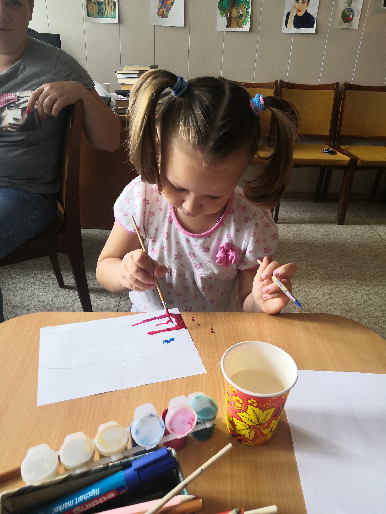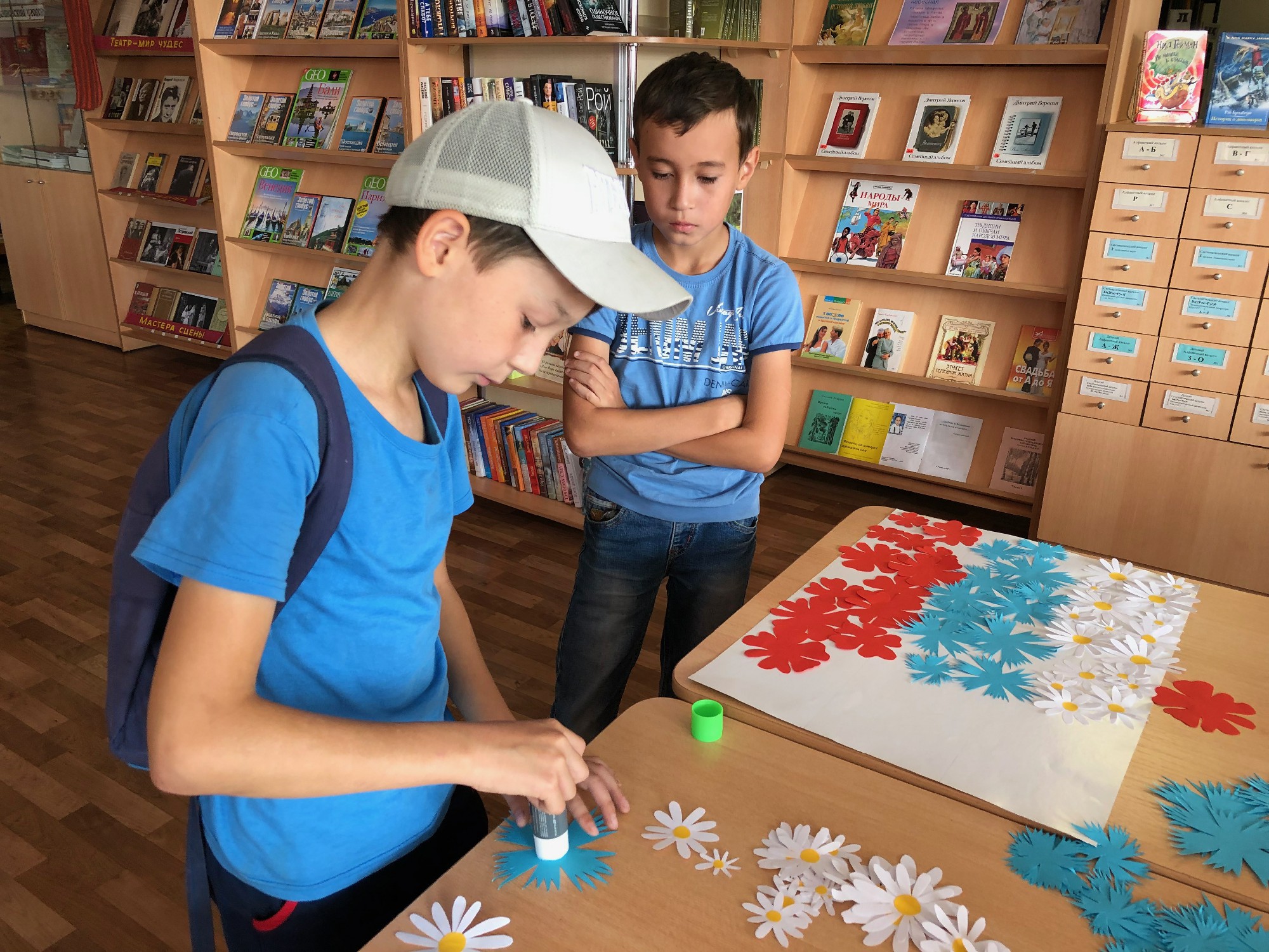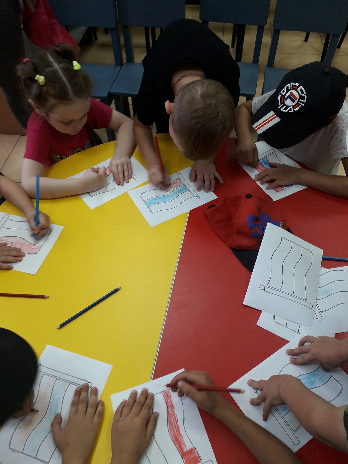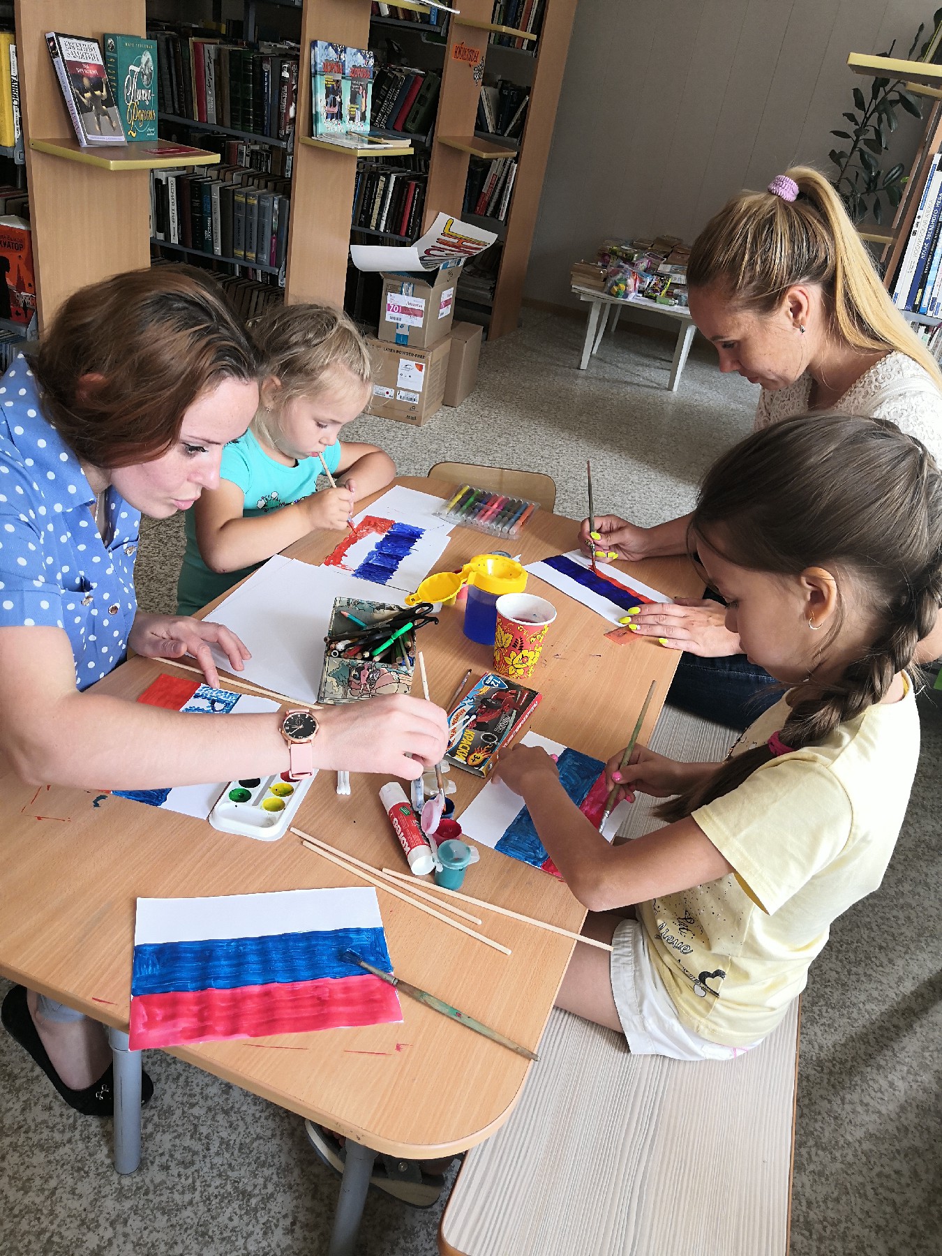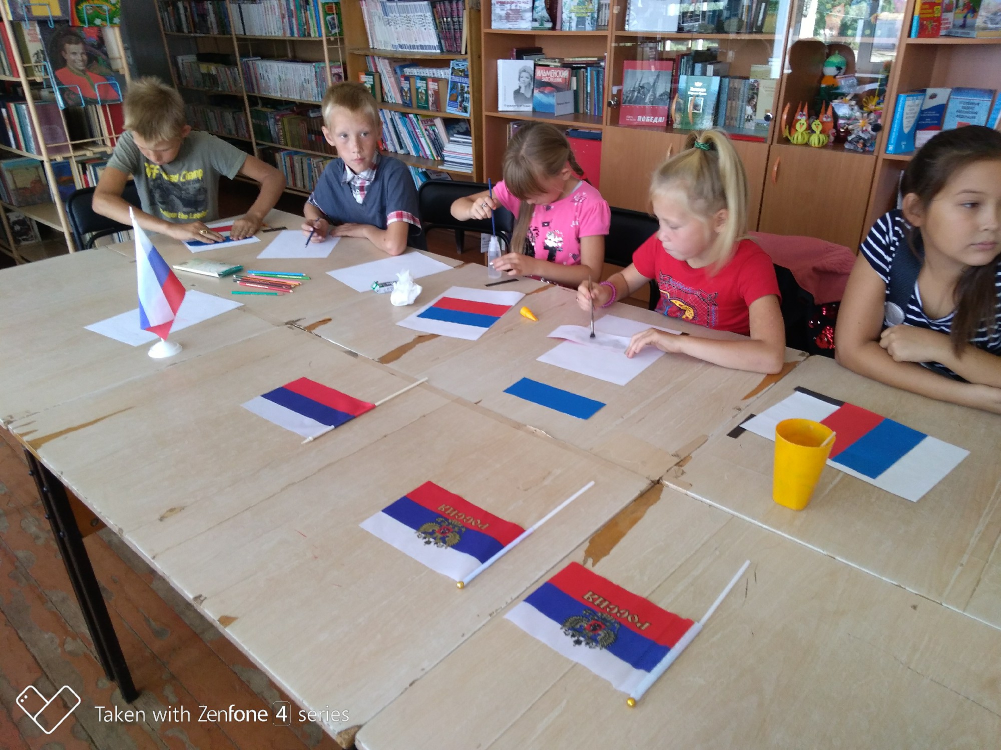 Как только вопросы детей закончились, начался мастер-класс. Каждый ребенок сделал свой маленький флаг. Старшие ребята, создали аппликацию, младшие – рисовали.