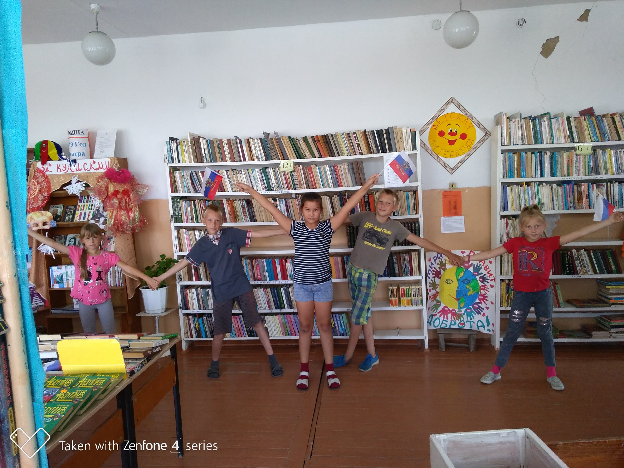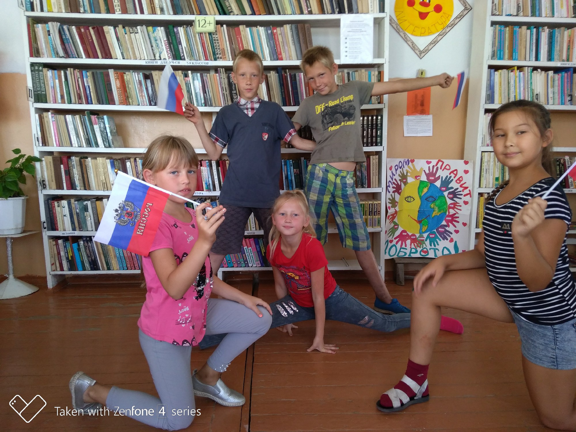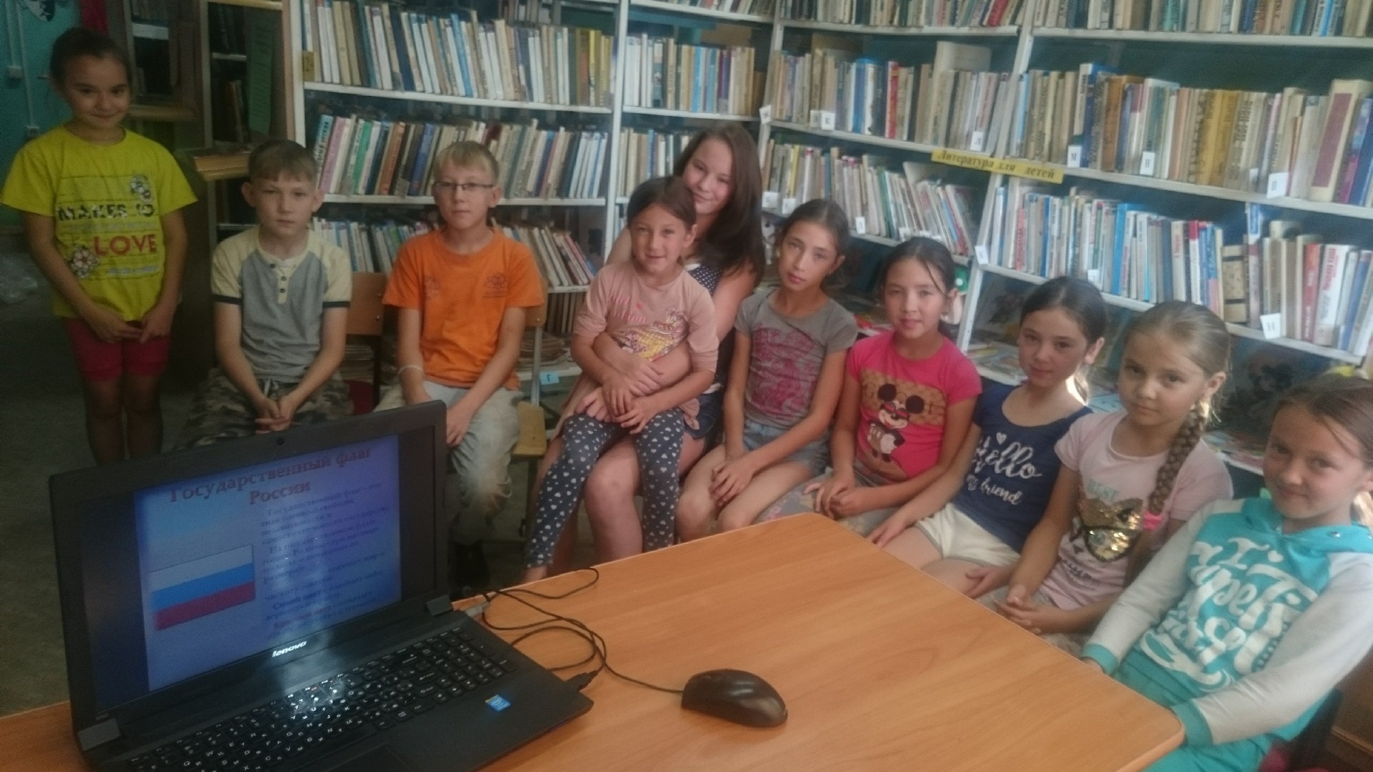 Библиотекарь Юлия Валеева познакомила ребят с историей возникновения и утверждения флага, как одного из символов государства российского, о том, что символизирует каждый цвет флага. Они узнали о том, что в каждой стране существует триединство символов: герб, флаг, гимн.