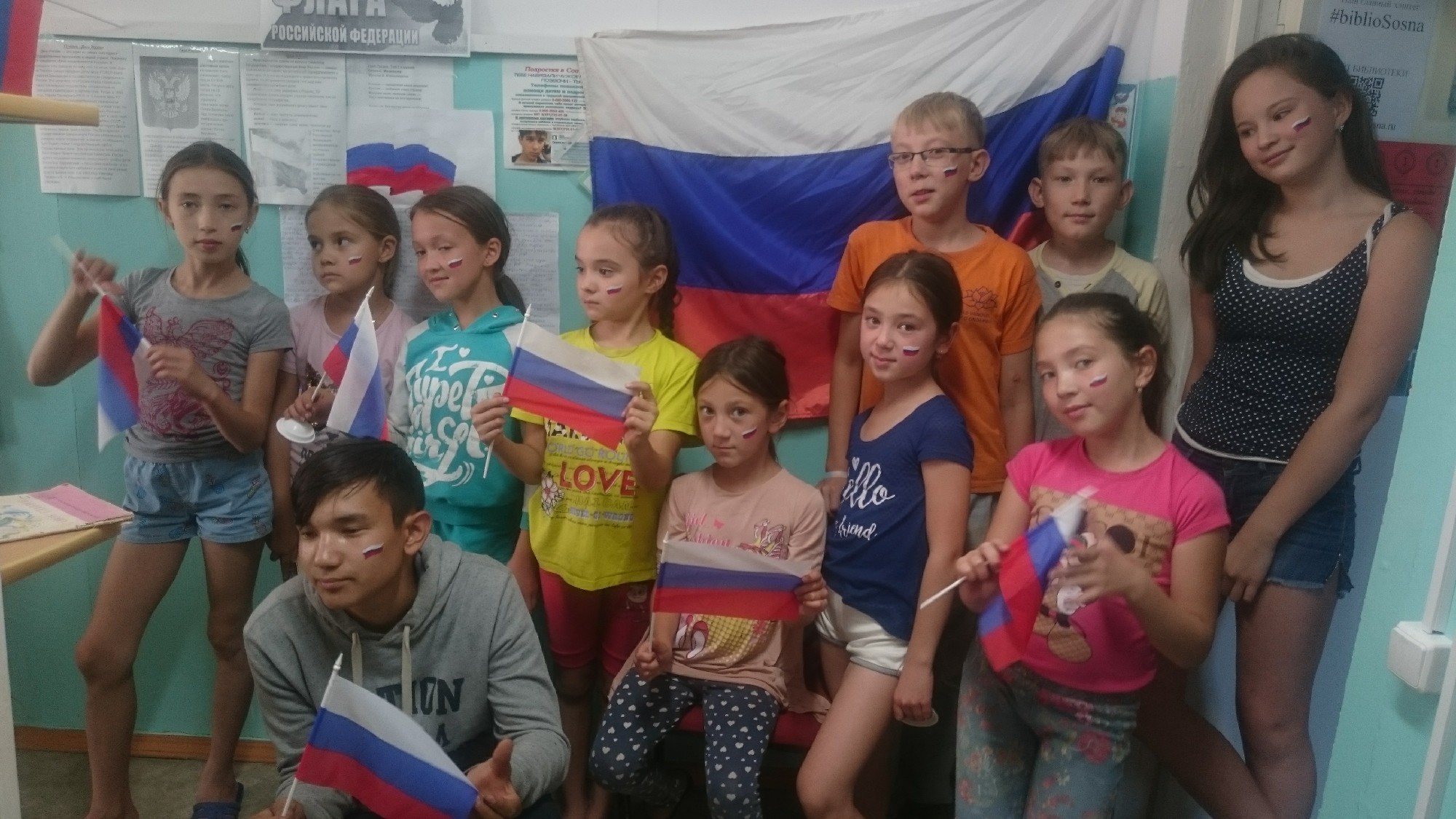 22 августа в библиотеке д. Алишева мероприятие началось с показа презентации о флаге России. Читатели узнали, что все страны мира, все государства, имеют свои флаги, гербы и гимны – они являются отличительным знаком государства. Юные посетители получили информацию о символах России, рассмотрев стенд и книги, оформленные в библиотеке. Уходя домой ребята унесли с собой часть праздника, лица всех детей были украшены изображением флага России с помощью специальной безопасной краски.
