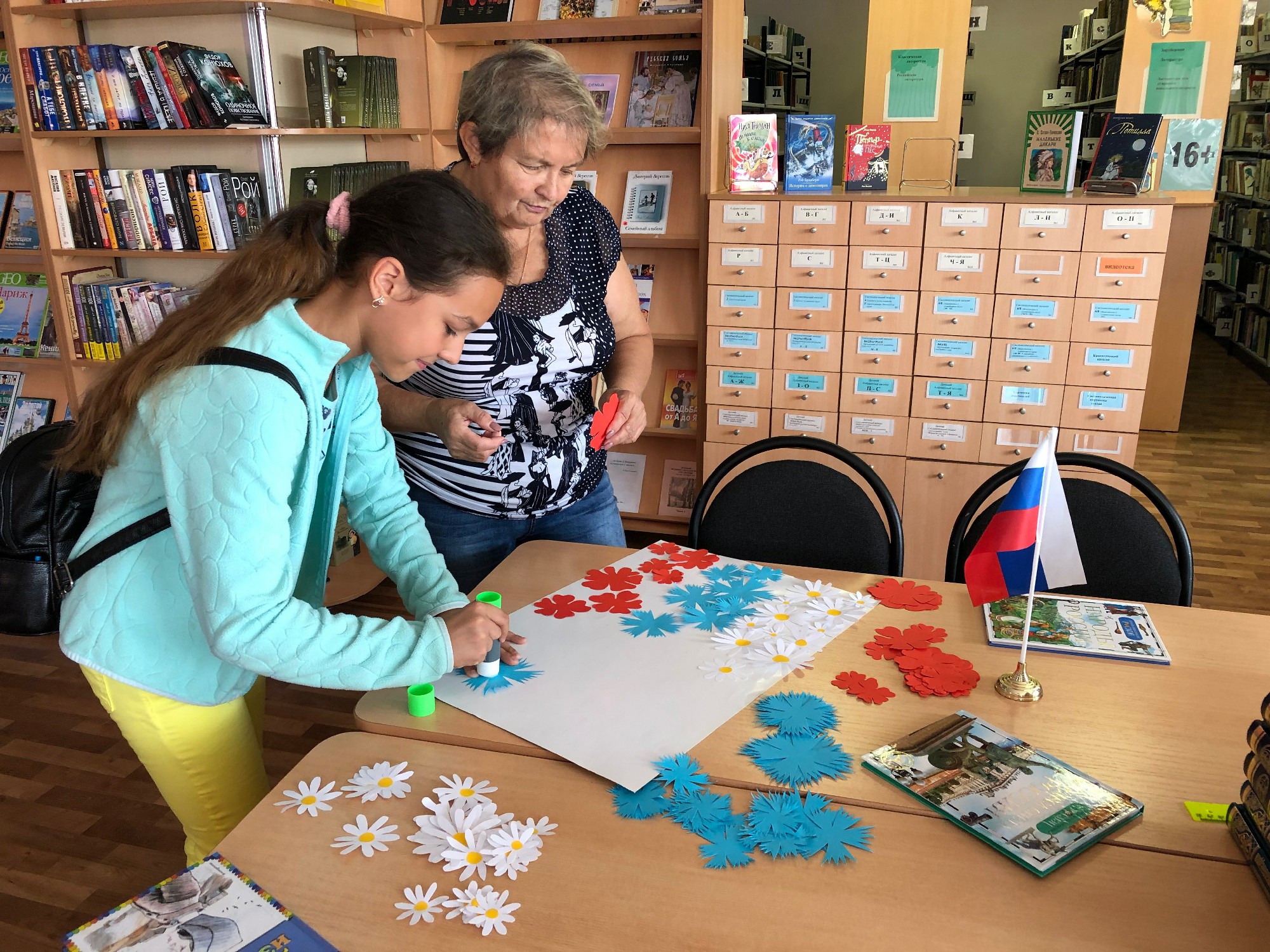 И хотя сам праздник - День Государственного флага Российской Федерации — не является выходным днем в нашей стране, но уже традиционно к этому важному празднику приурочено множество мероприятий. В Краснопольской библиотеке читатели познакомились с историей праздника, узнали о важности и значении государственных символов России. С маленькими патриотами библиотекарь проводила творческие минутки, каждый желающий смастерил флаг нашей страны.