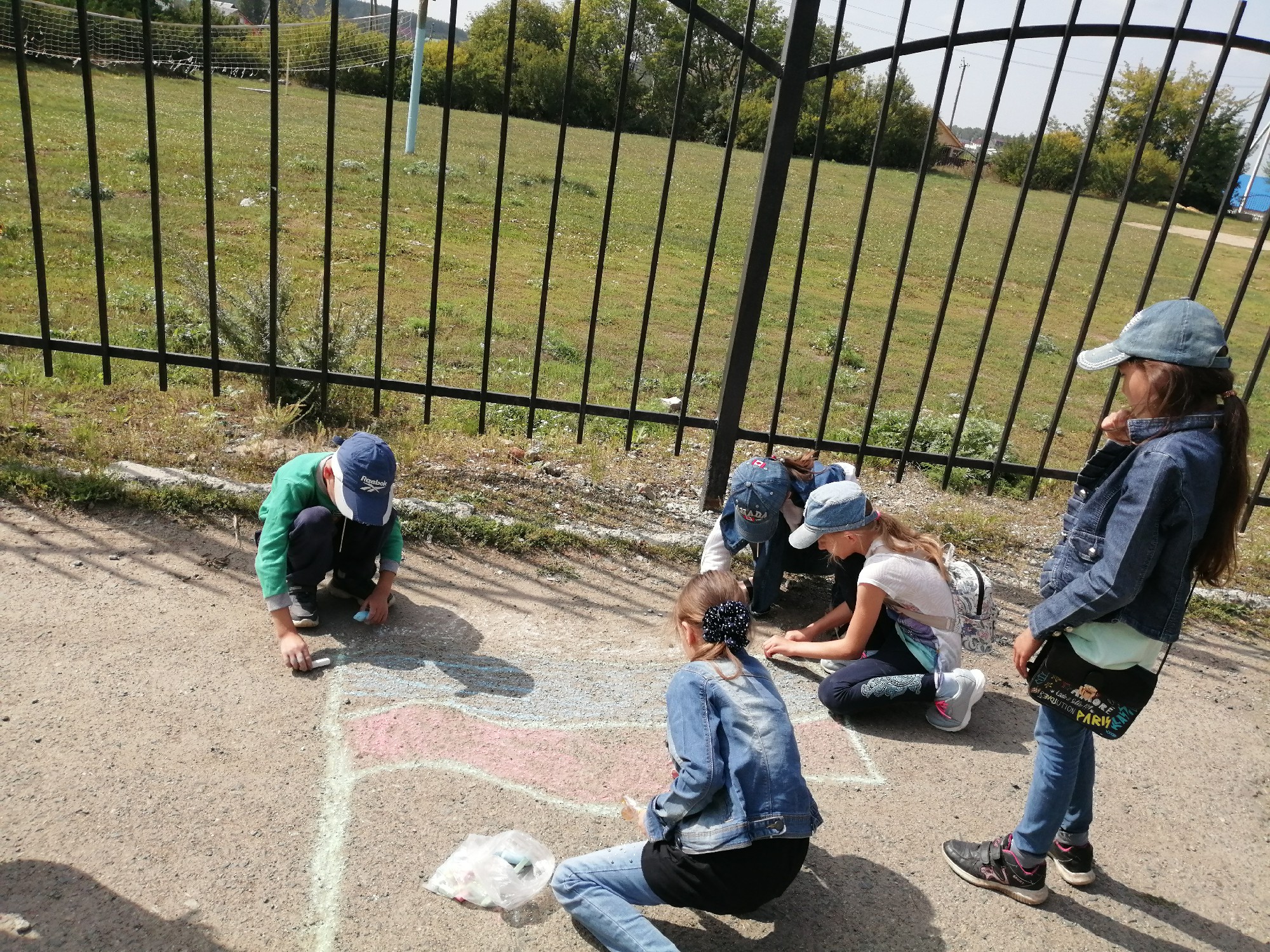 Путешествие закончилось тем, что дети вышли на улицу и нарисовали общий рисунок на асфальте, а именно символ Российской Федерации, посвященный данному празднику. Этот рисунок означал, что «Все вместе мы – едины и сильны!!!»