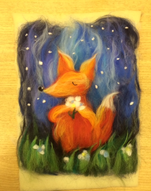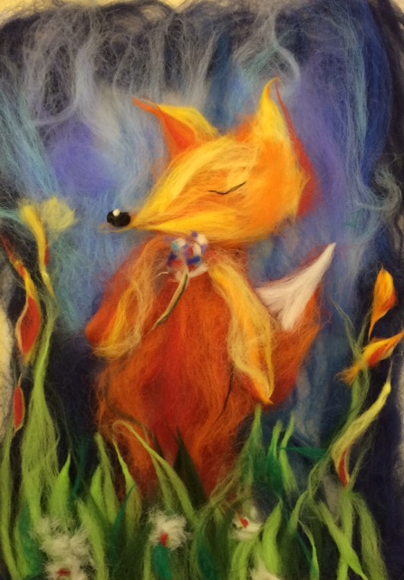 Яркие рыжие лисички стали главными героями картин участников мастер - класса Елены Бухтояровой по шерстяной живописи.