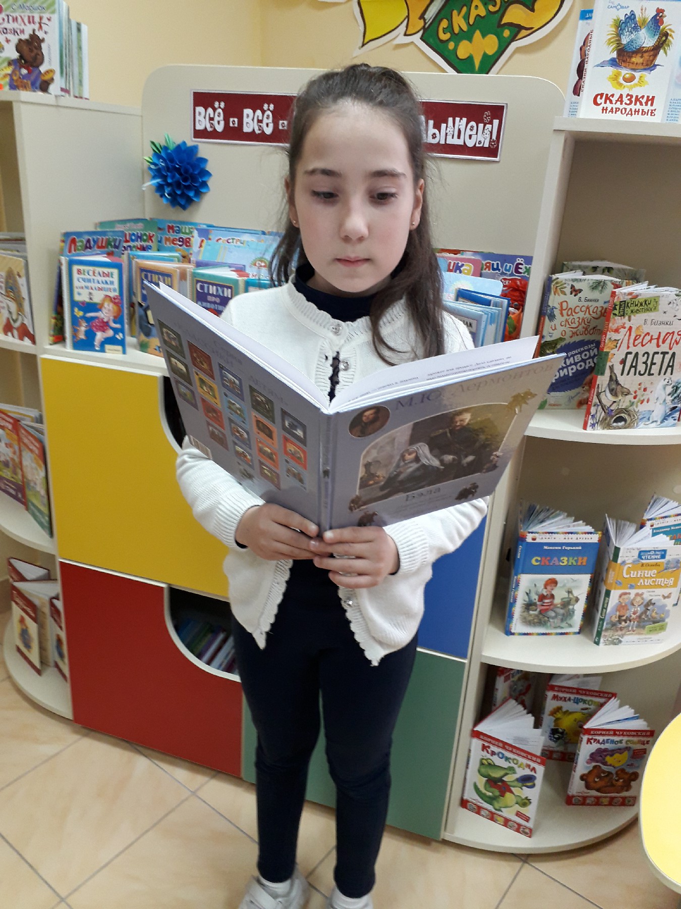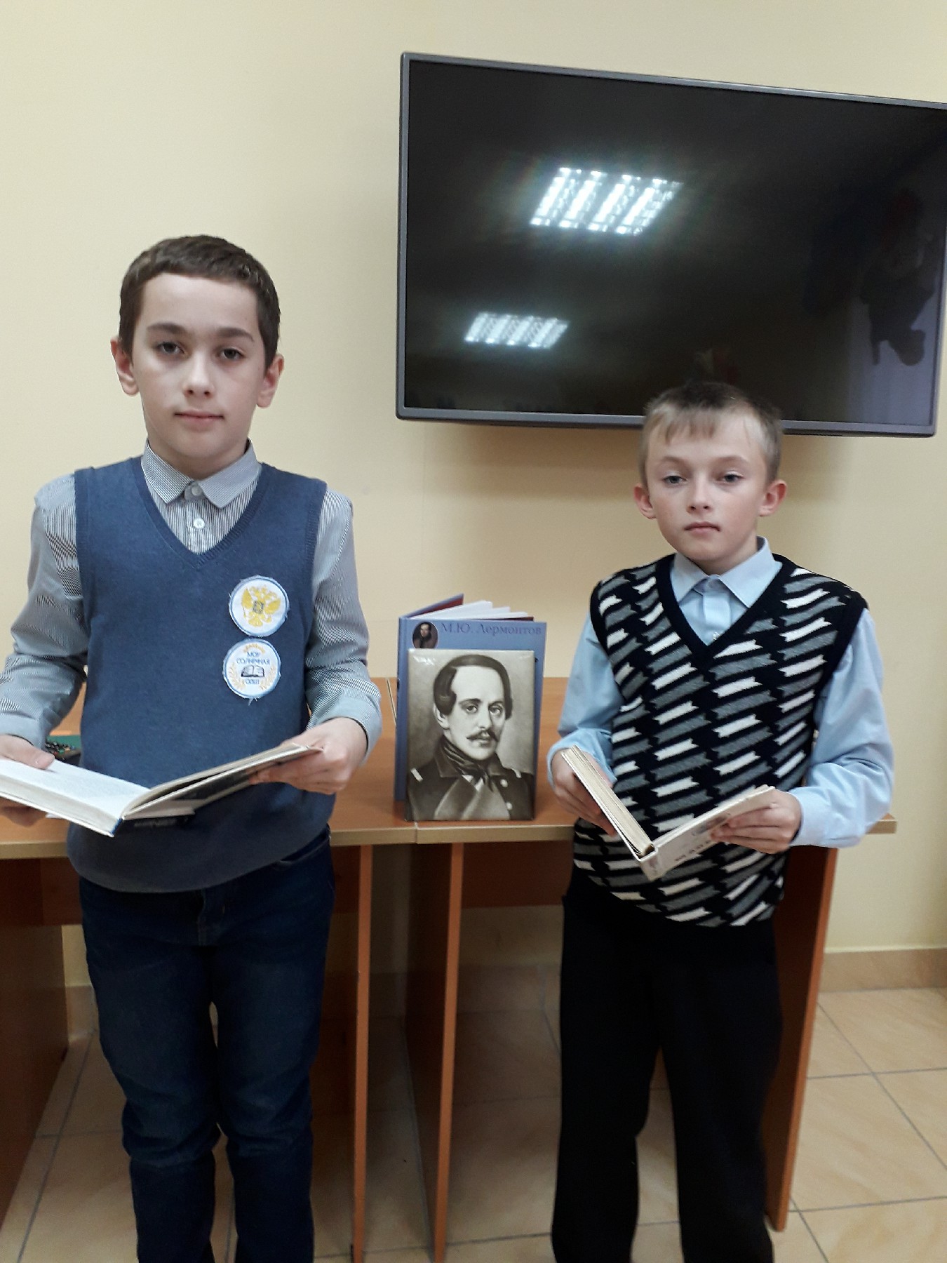 Библиотекарь познакомила ребят с жизнью и творчеством поэта; во время показа презентации дети узнали, что Михаил Юрьевича бывал в Геленджике, в Пятигорске, в Середниково, в Тарханах (ныне село Лермонтово), а также интересные факты из жизни и многое другое.