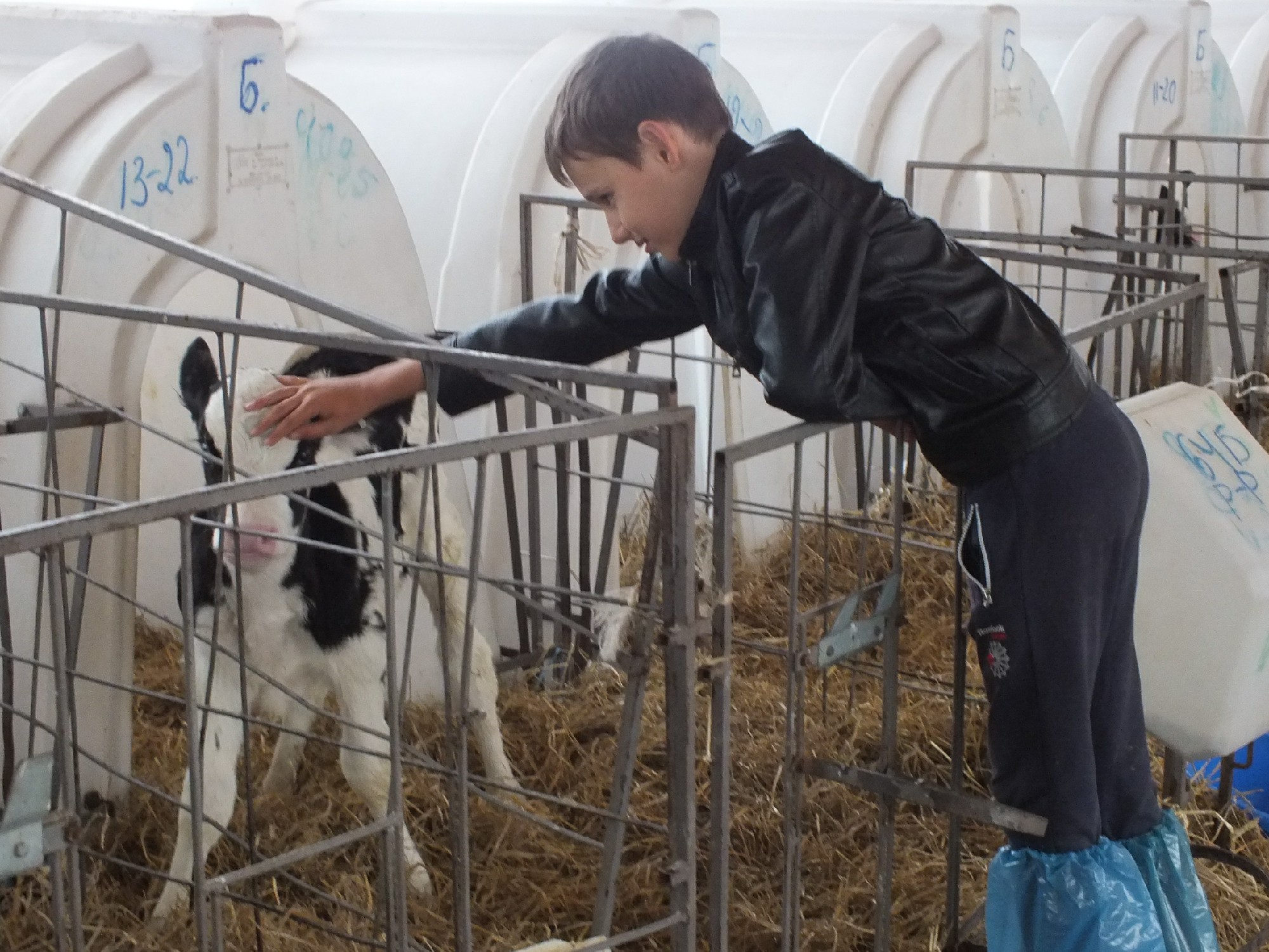 В течение экскурсии дети наблюдали, как ухаживают за животными. Побывали в отведенном зале для дойки коров и узнали, что коровы заходят на специальную площадку, на которой автоматизированным оборудованием обрабатывают вымя коровы, после чего одевают доильный аппарат.