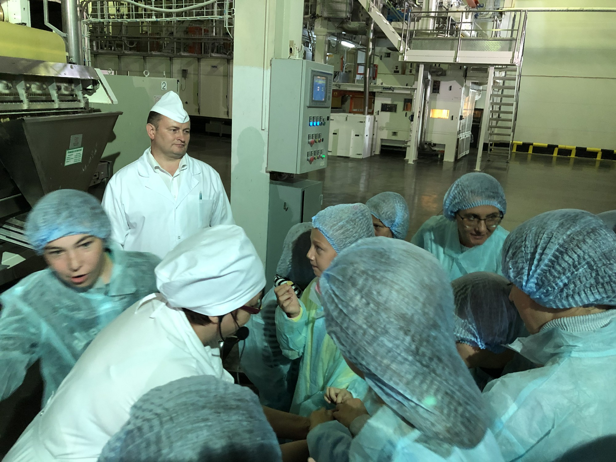 После посещения мельницы отправились в цех по производству макарон, где всех встретил технолог макаронного производства Александр Глазырин. Ребята своими глазами увидели, как делают макароны (замес теста, формовка макарон) и даже смогли попробовать мягкие макароны, не прошедшие сушку. Всем очень понравились такие макароны!