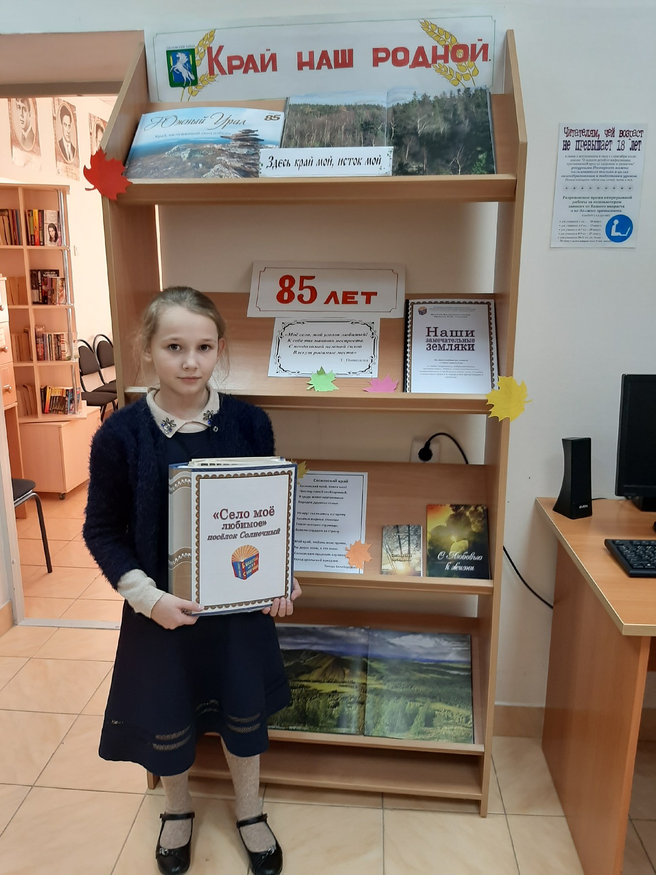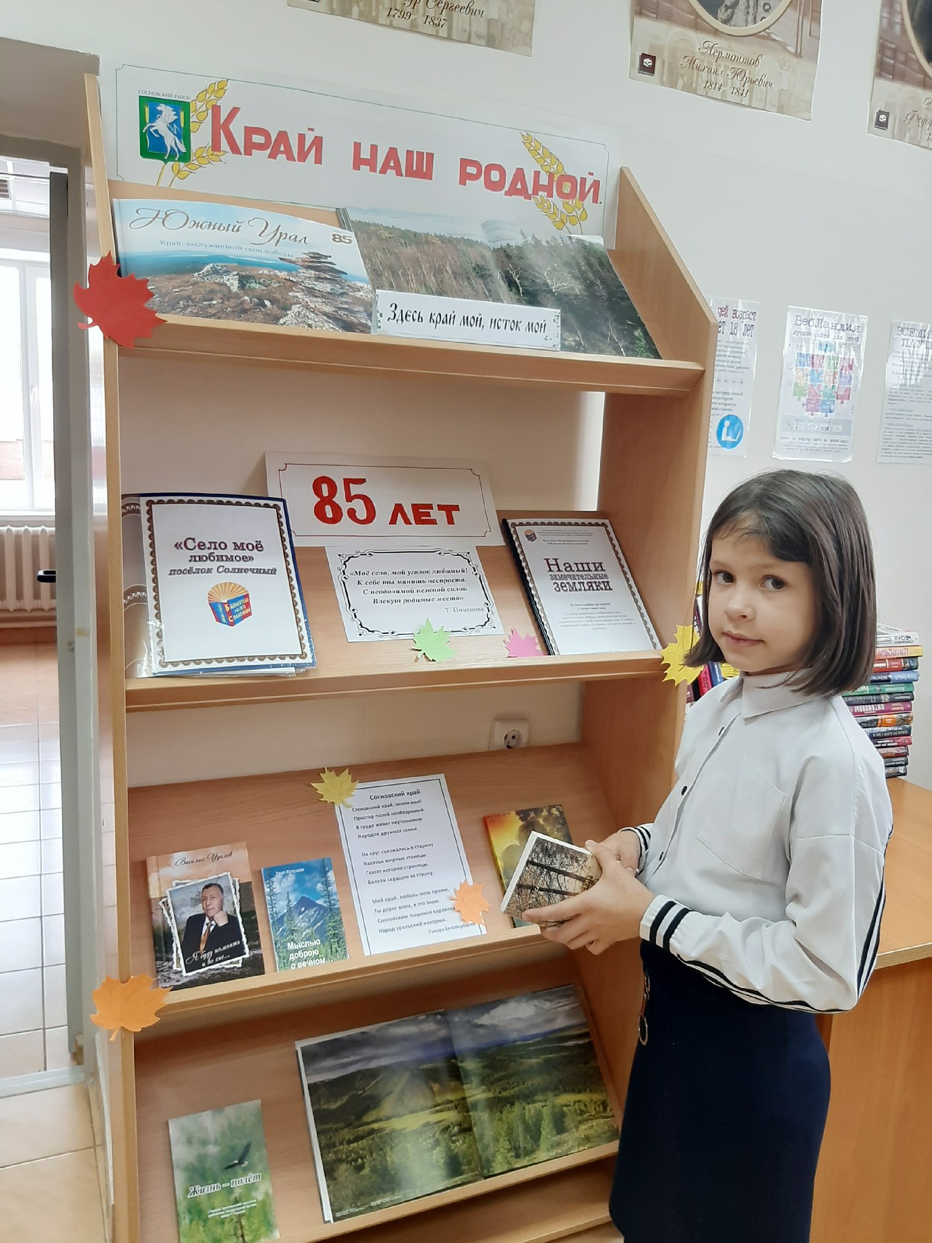 Накануне этого замечательного события – 85-летия Сосновского района школьники собрались у библиотечной выставки «Край наш Родной». Библиотекарь Людмила Владимировна познакомила с историей, с атрибутами Сосновского района на стенде. Также были представлены фотографии, книги, альбомы о нашем крае. С огромным вниманием ребята рассматривали фотоальбомы со старыми фотографиями. Особый интерес вызвали папки с подборками материала «Село моё любимое» и «Наши замечательные земляки». В заключение встречи посмотрели видеоролик о поселке. Фотографии к видео предоставил М.Р. Шакиров, а смонтировал ролик М. Галимов.