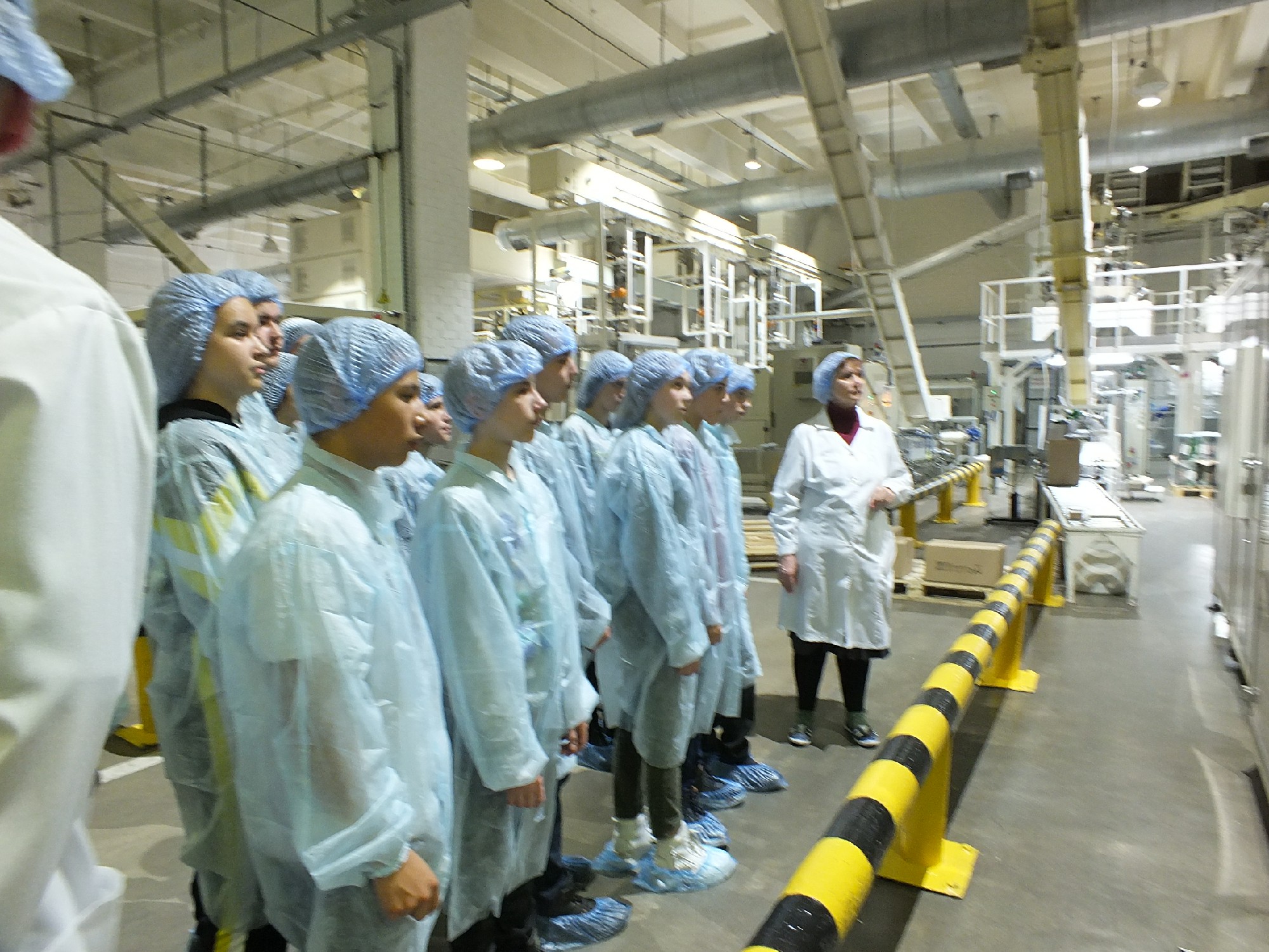 Добирались на школьном автобусе. Дети, несмотря на то, что экскурсия сразу после уроков, были в приподнятом настроении, каждый ждал праздника. У дверей фабрики нас встретил технолог предприятия, который проводил в комнату, где проводится вводная часть экскурсии.