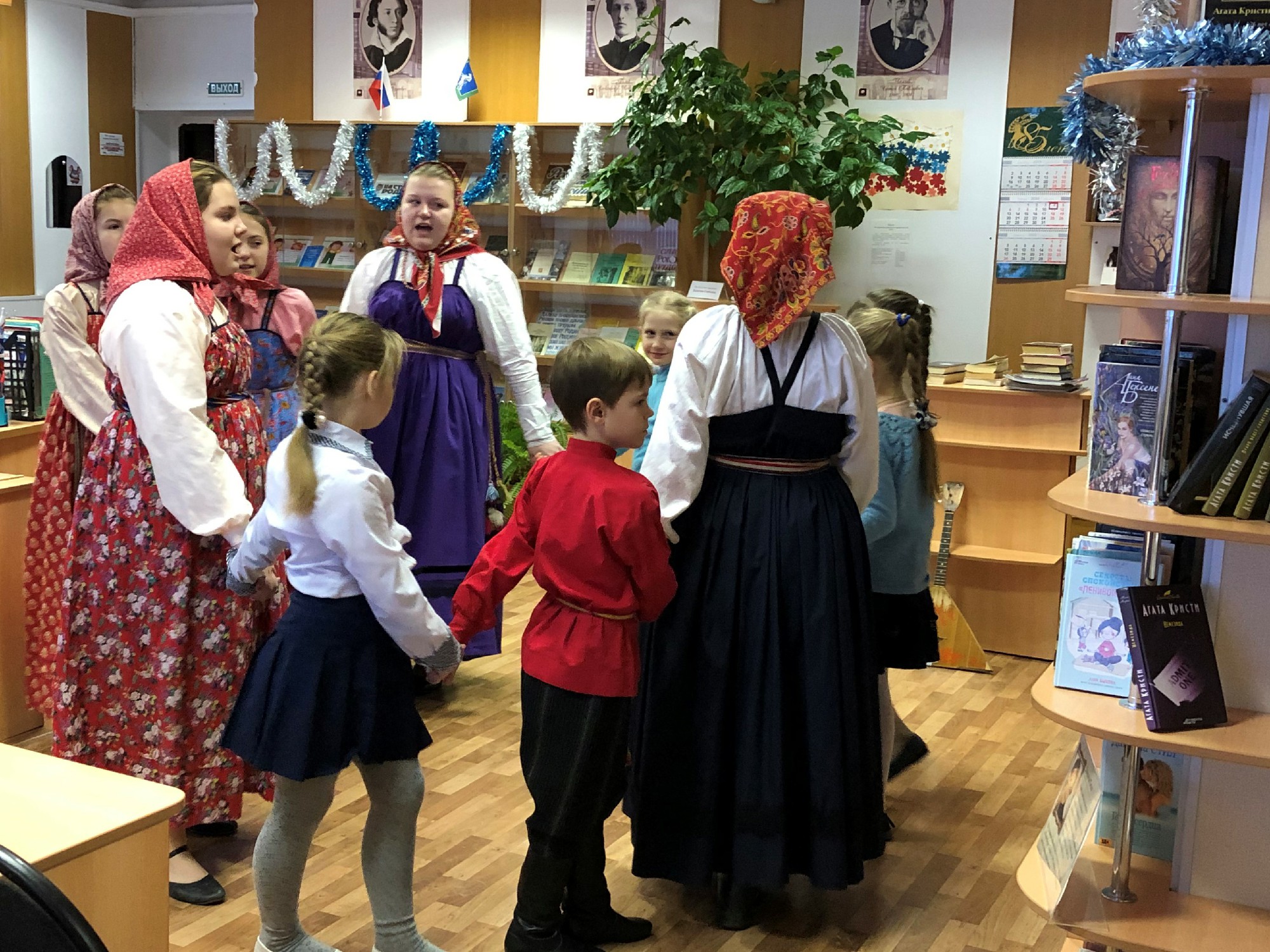 Новый год в Рощинской библиотеке начался с праздничных фольклорных посиделок, посвященных святкам. Праздник прошел с участием ребят фольклорного отделения ДШИ п. Рощино и их преподавателя Любови Шмаковой. Любовь Павловна рассказала первоклассникам о таких народных праздниках, как Рождество, Старый Новый год и Крещение.